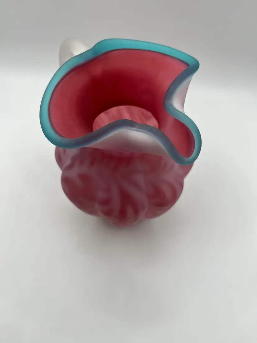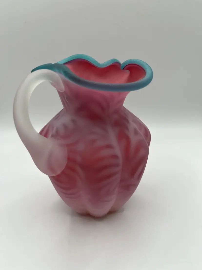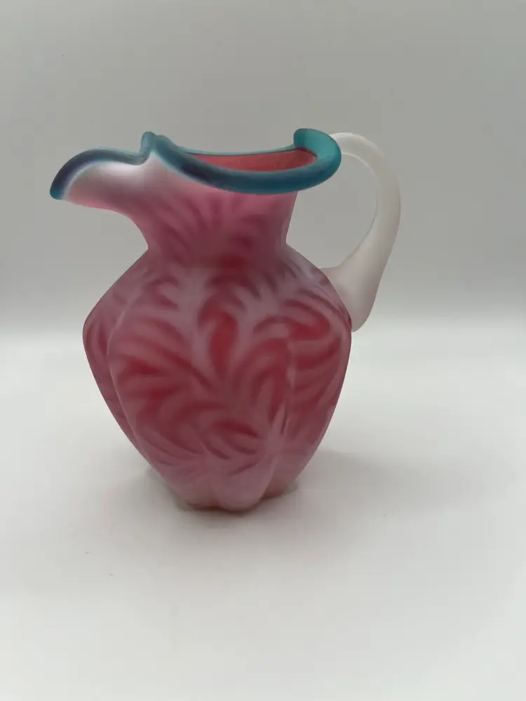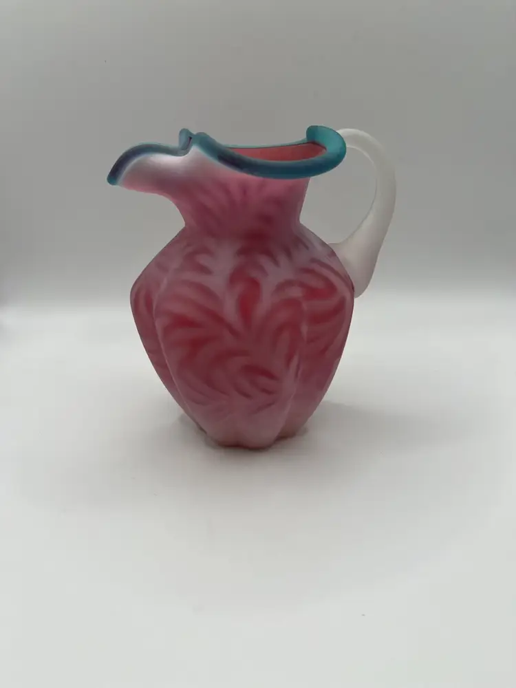 Beautiful Fenton Blue Crest Cranberry Opalescent Fern Pitcher. 5” Excellent condition. No chips or cracks.