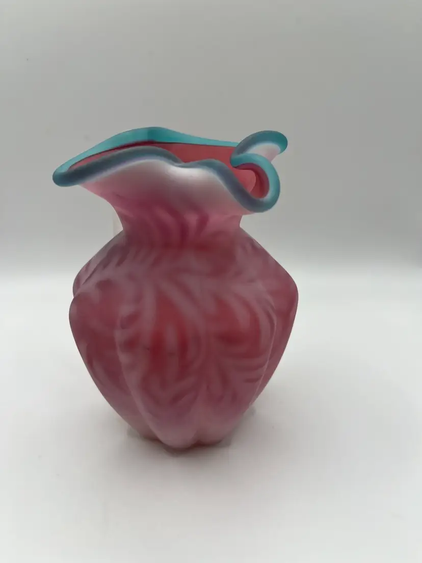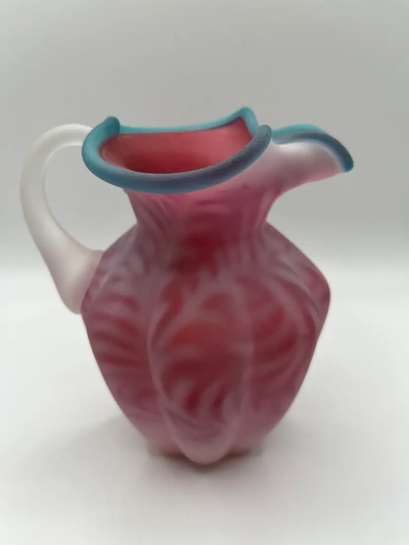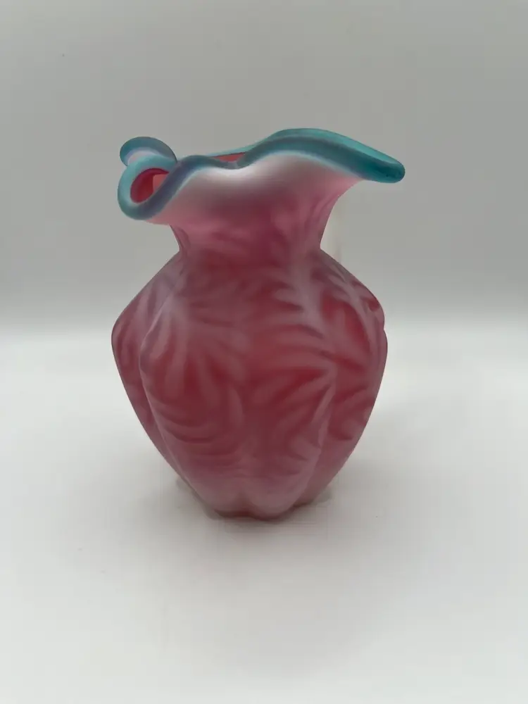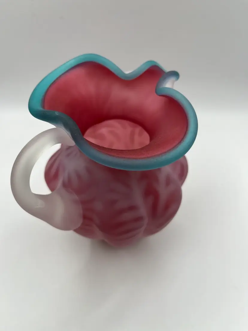 Beautiful Fenton Blue Crest Cranberry Opalescent Fern Pitcher. 5” Excellent condition. No chips or cracks.