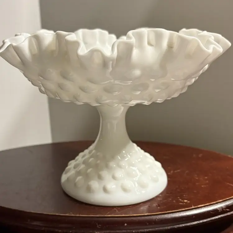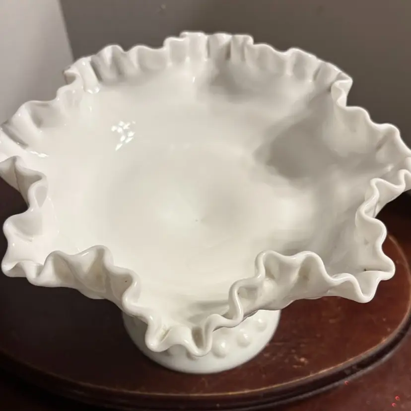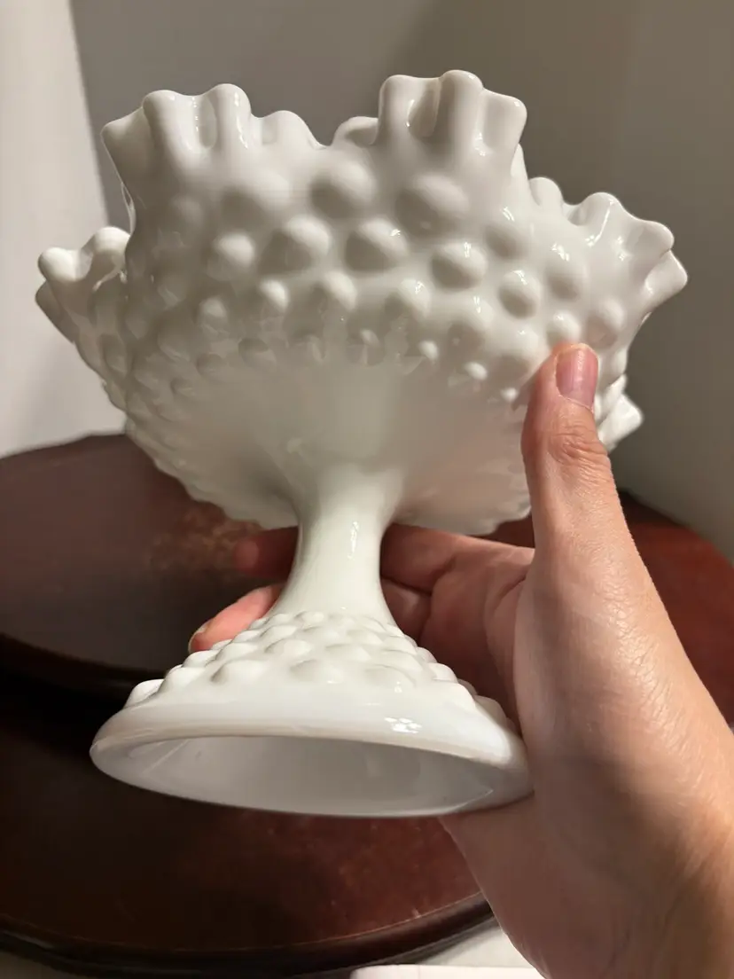 5.75” tall and 7.5 wide mouth, double crimped edge