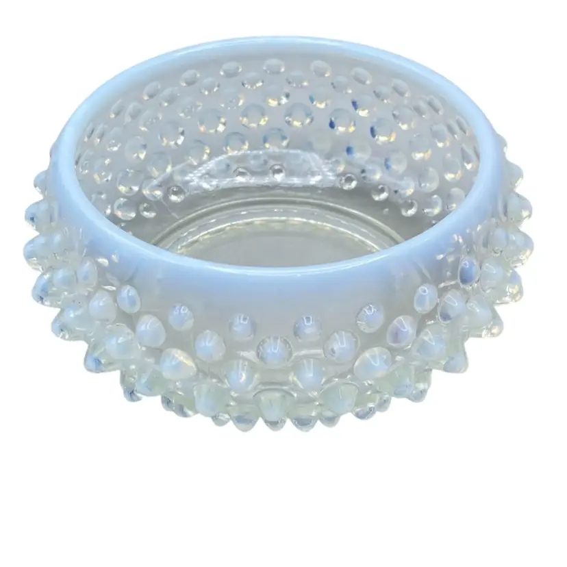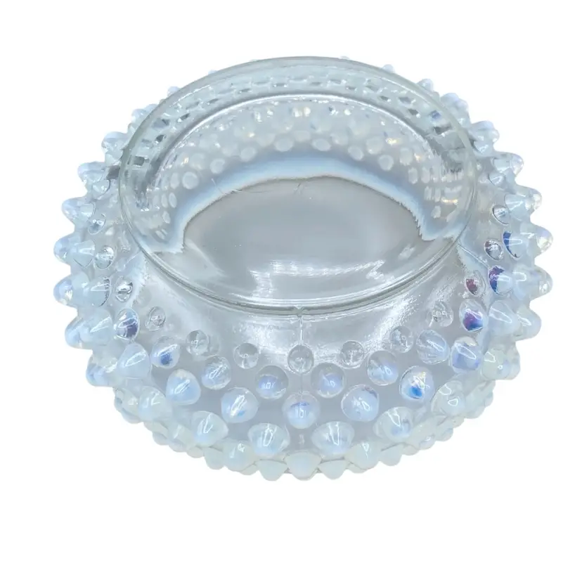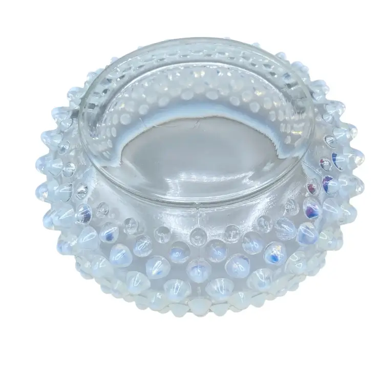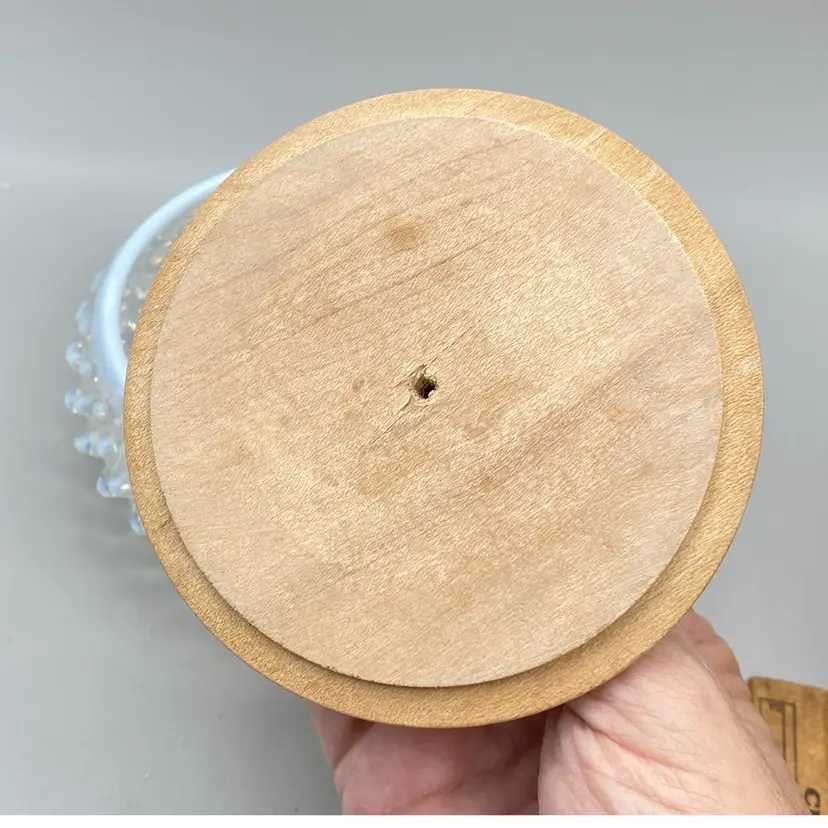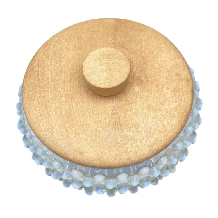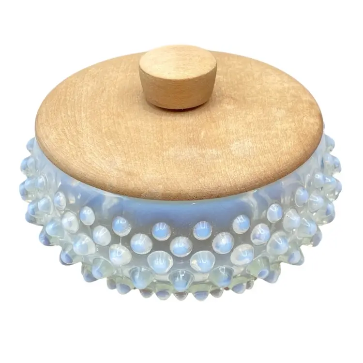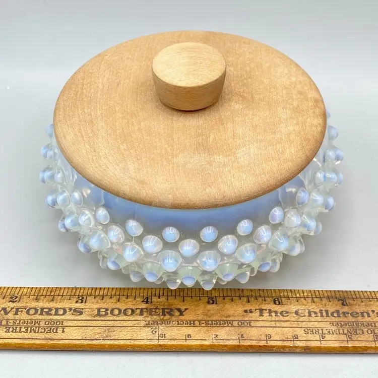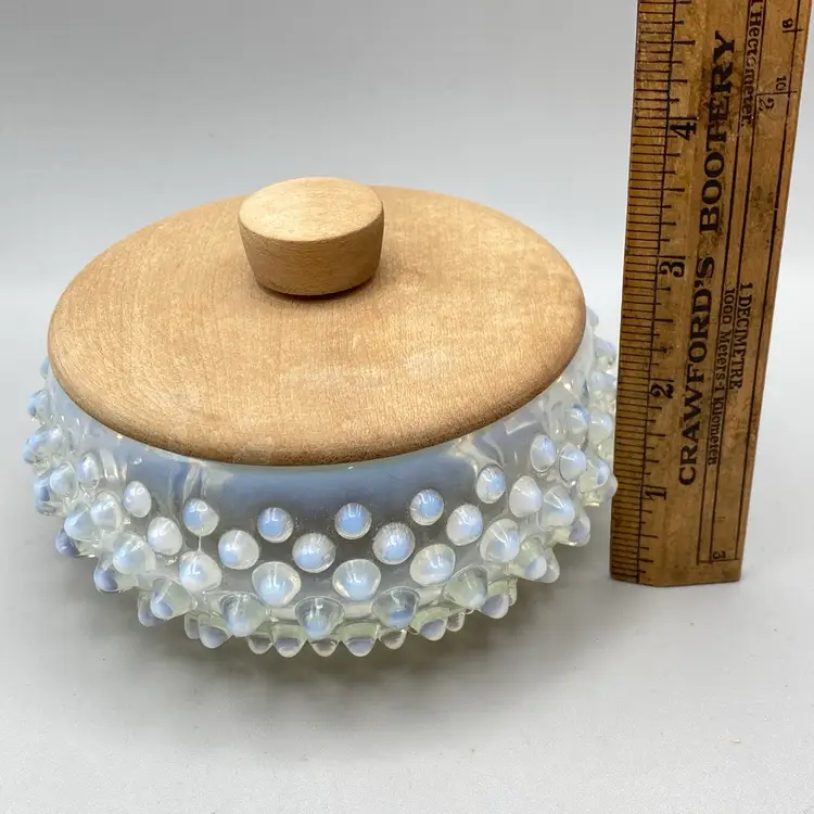 Fenton Hobnail French Opalescent Powder Dish Early Wooden Lid Cottage Vanity READ Mark on bottom cannot feel inside