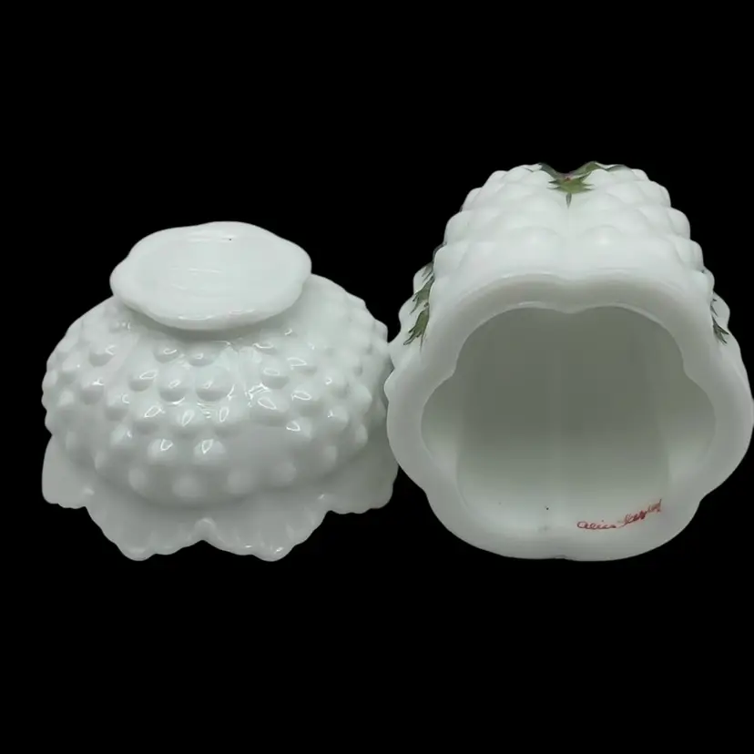 Featuring hand painted Holly and Berries and signed by Alice Farley. Circa 1971-1974 and in mint condition!