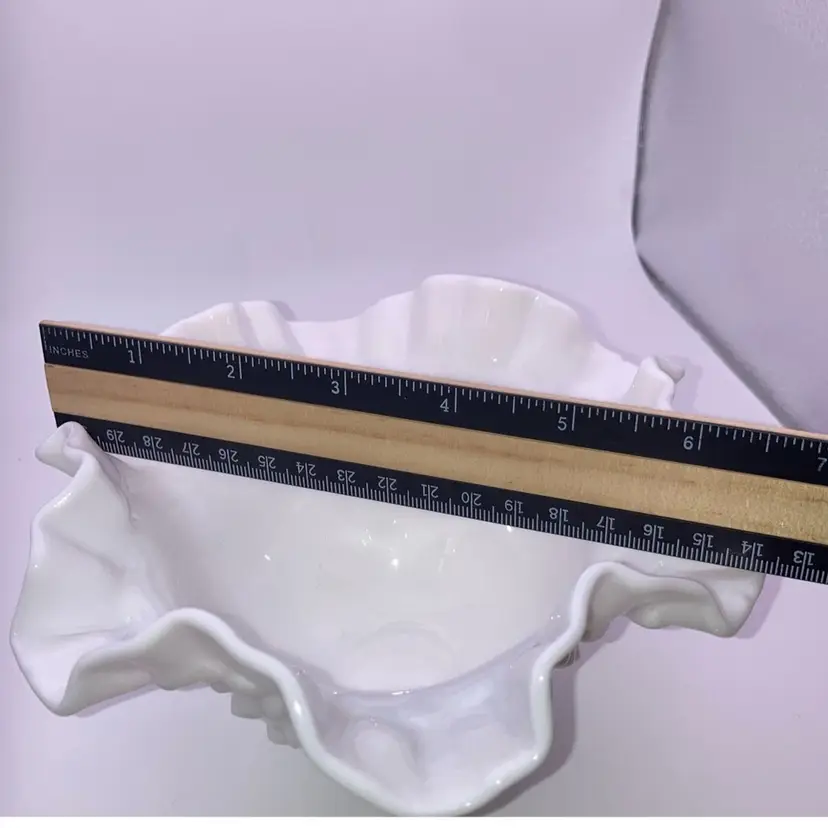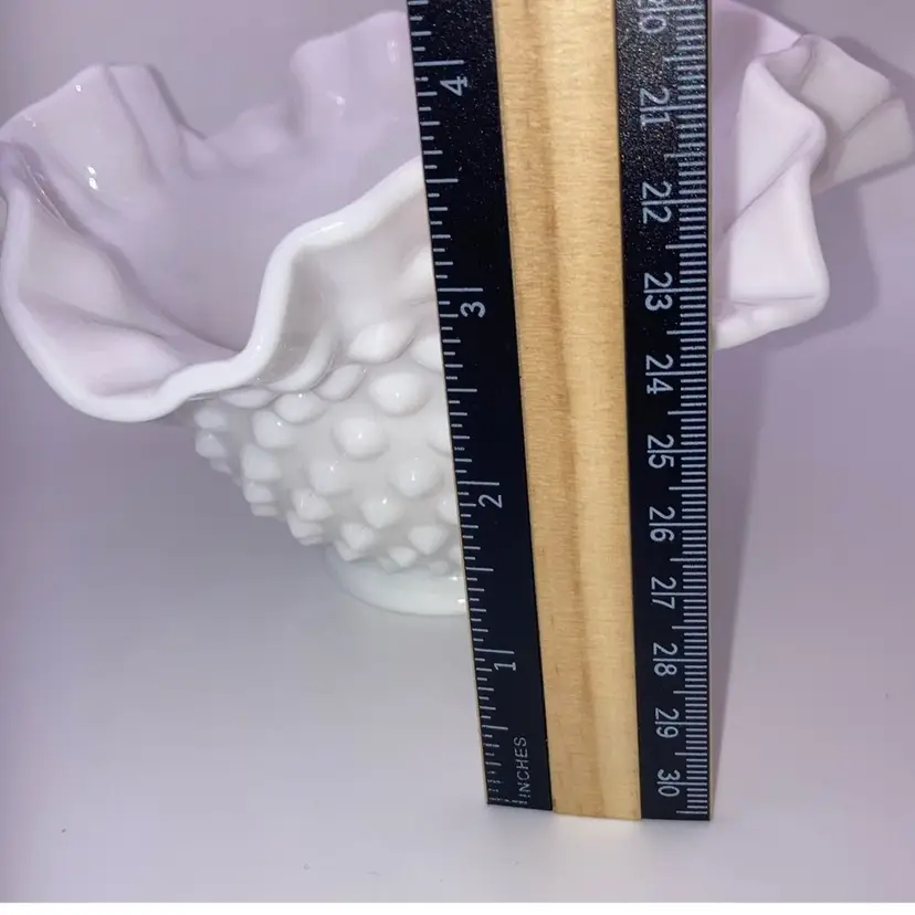 Fenton Hobnail Ruffled Bowl! 3 1/2” Tall 6 1/2” Wide! NEW to District? Enter code Michel42 into your wallet prior to your first ever purchase and save $5 off any $10 or more! Give me a Follow and I WILL Follow you back!