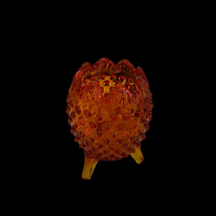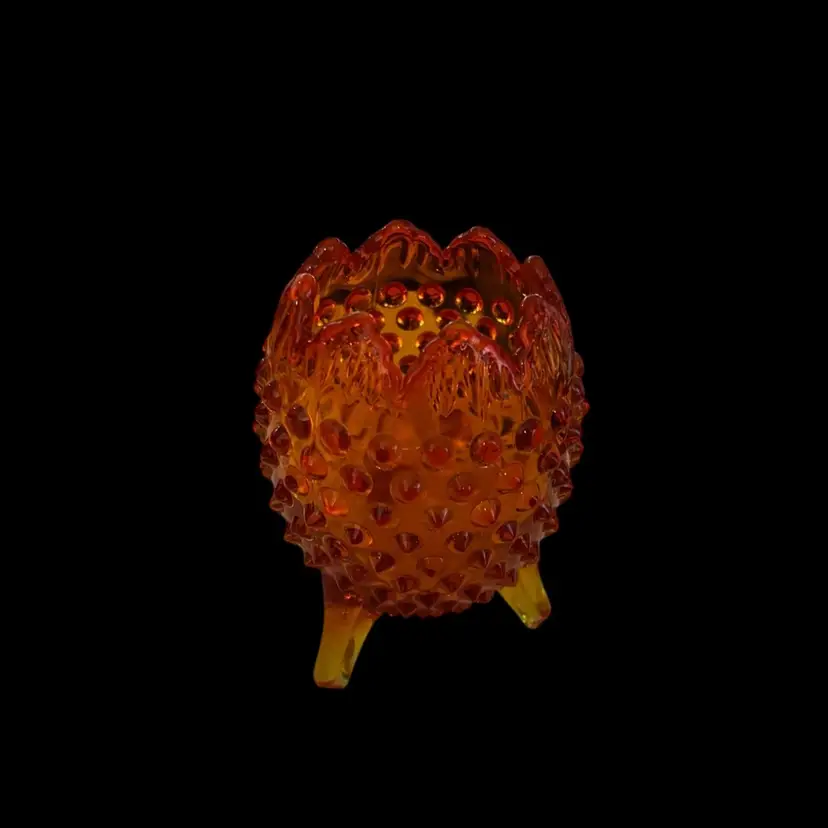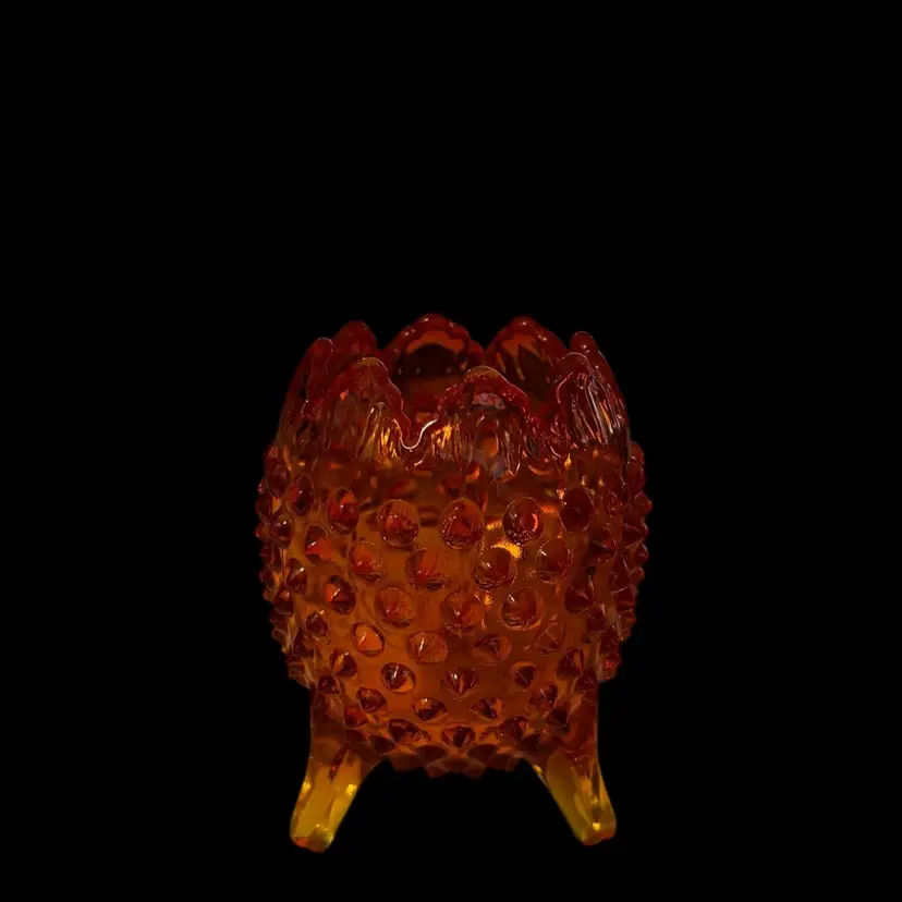 Add some groovy to your home decor with this cute Fenton hobnail tulip vase/votive holder. Sparkling orange and yellow Amberina will add a nice color pop to decor or a great addition to your glass collection.