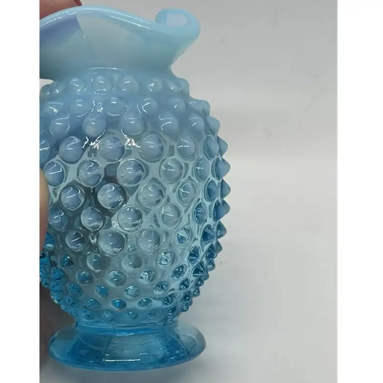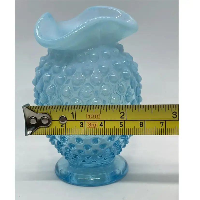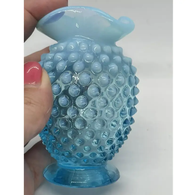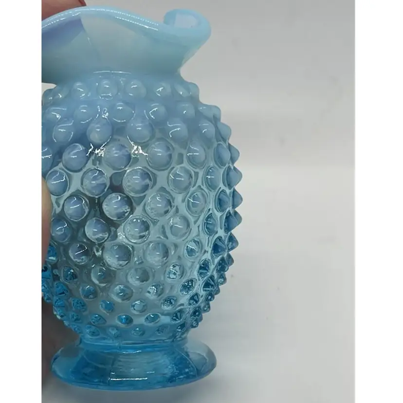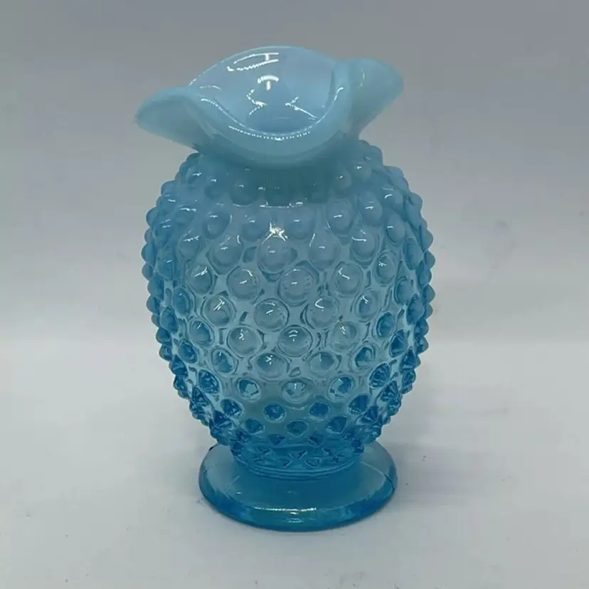 Fenton Hobnail Vase Blue Opalescent Ruffle Rim 3.75” Tall.