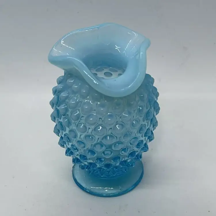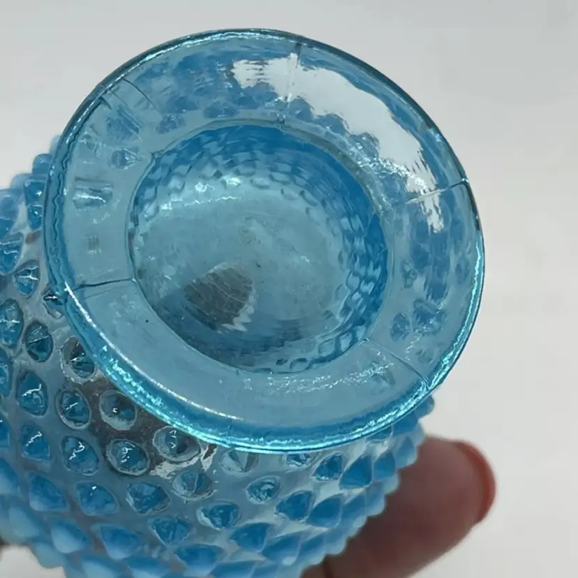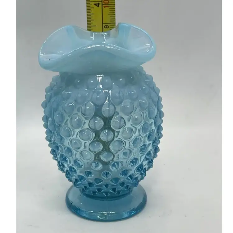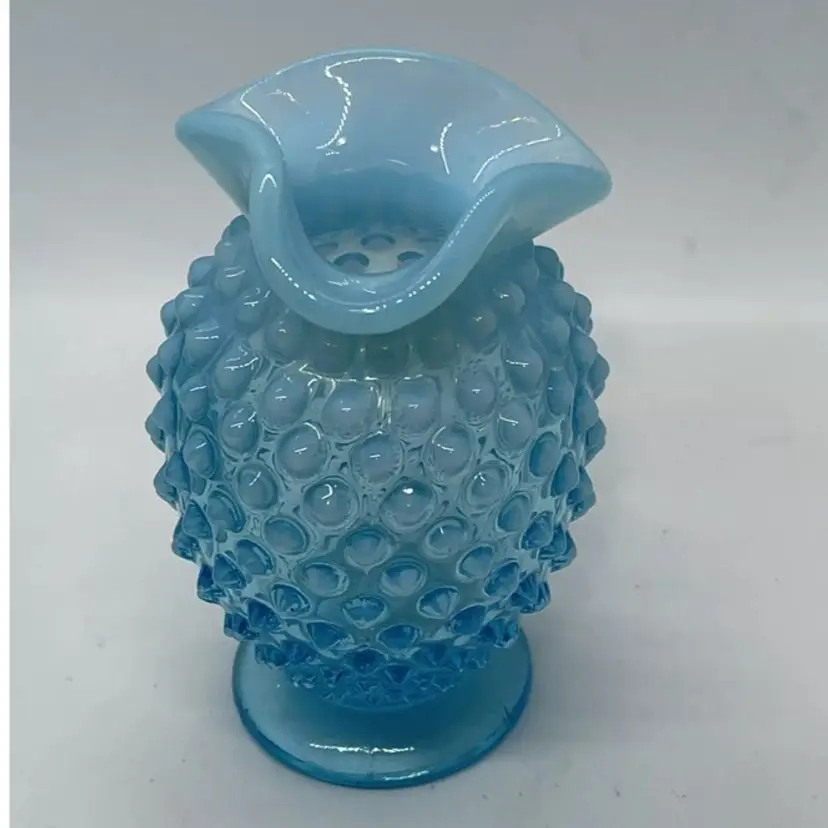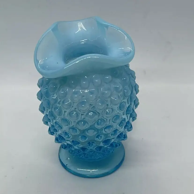 Fenton Hobnail Vase Blue Opalescent Ruffle Rim 3.75” Tall.