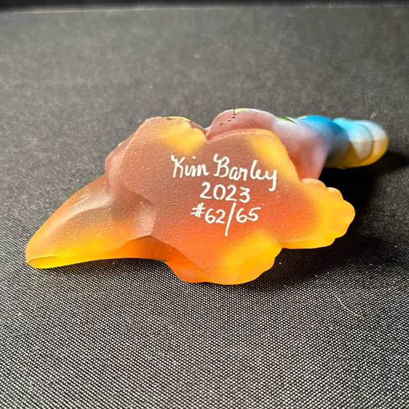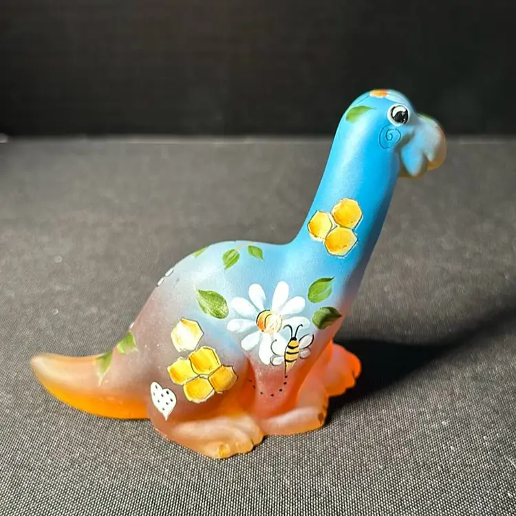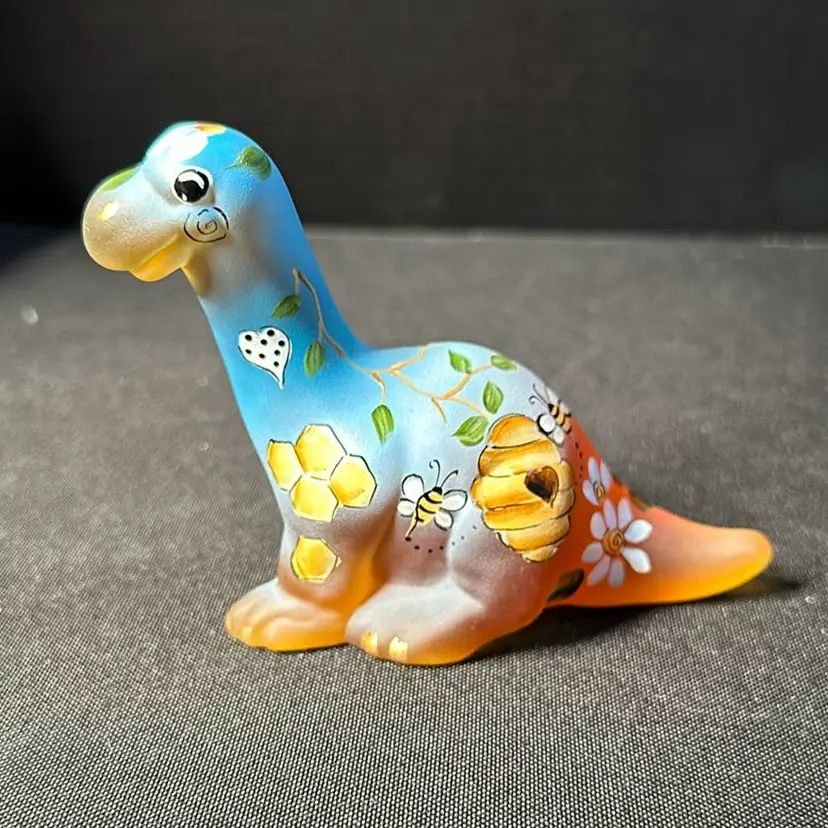 Darling Fenton Dino painted by Kim Barley with honey comb, bees, flowers and hearts. Limited edition Number 62/65. Sold exclusively through the Fenton gift shop. No chips or cracks approximately 3” tall x 4” wide