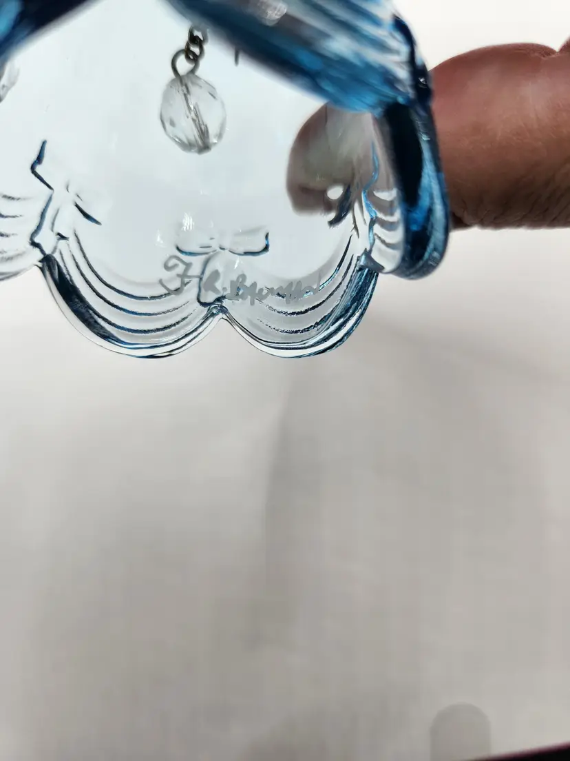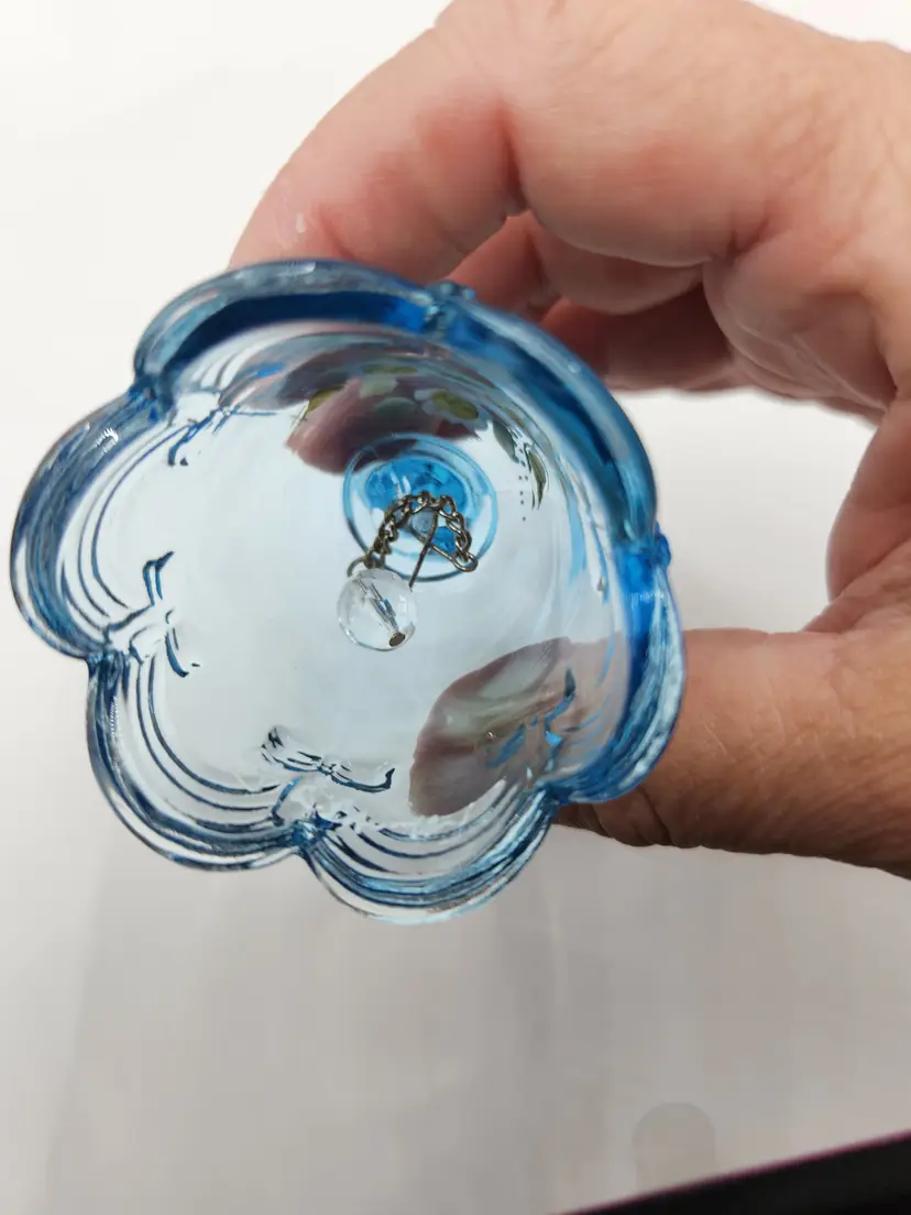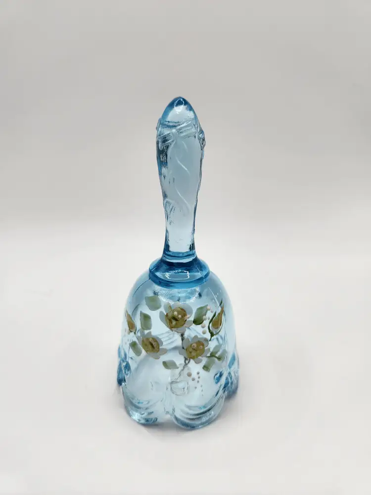 Fenton Art Glass Bell Ice Blue Handpainted flowers Signed...F.R. Bai....(I cannot make out the rest) see last photo No chips or cracks