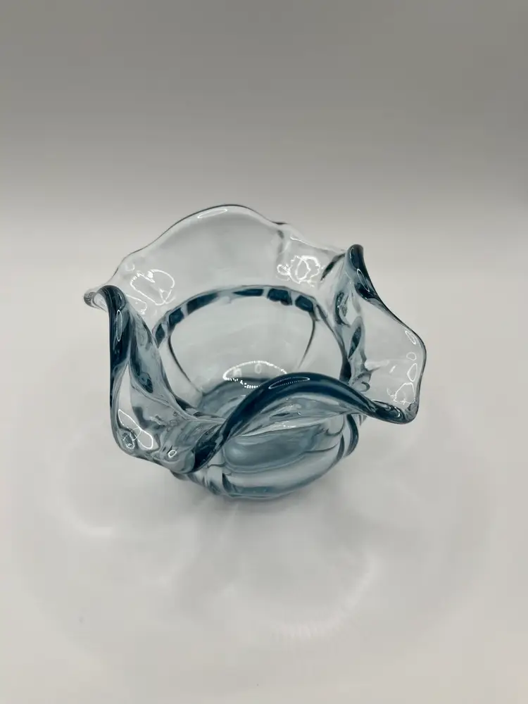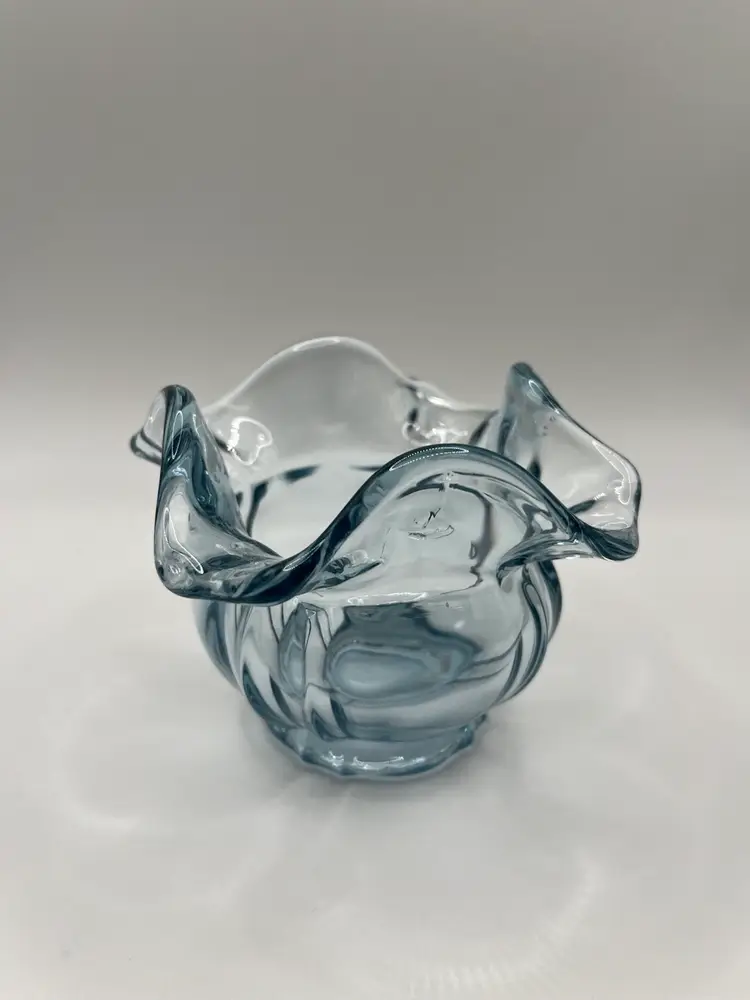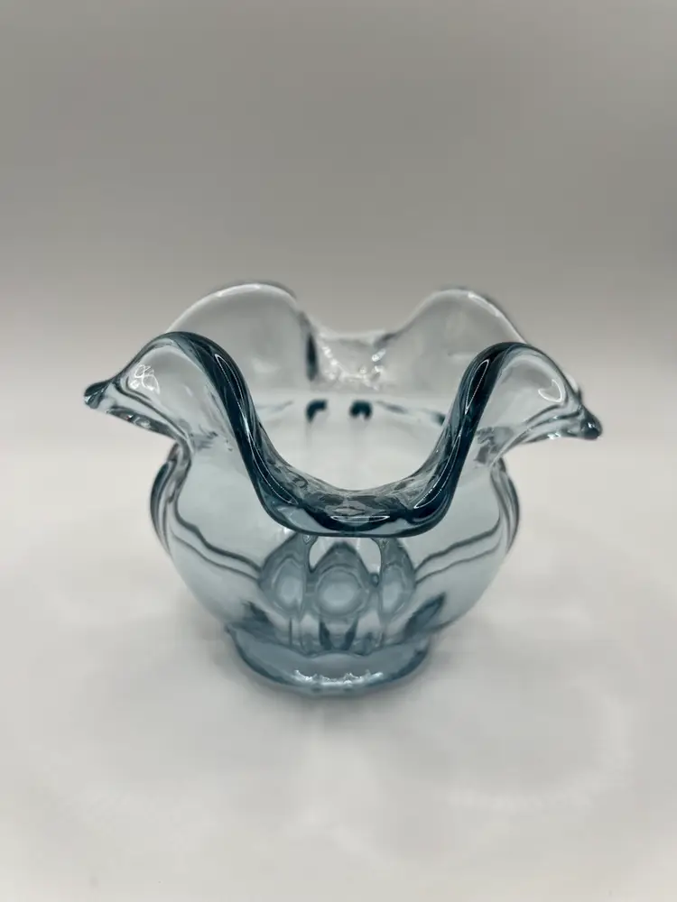 Fenton Ice Blue Ruffled Rim Candy/Trinket Bowl 3.5" Tall No chips or cracks.