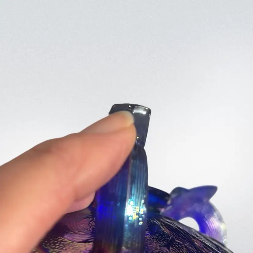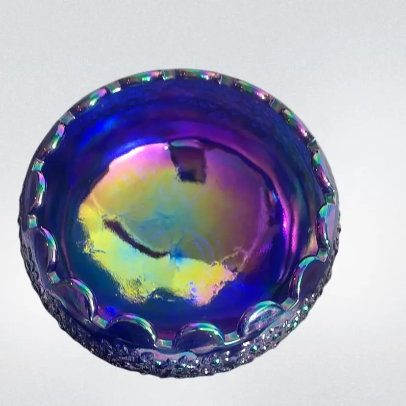Has small chip on two feet. Beautiful bowl. 4” t x 5” w