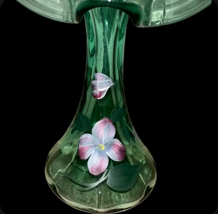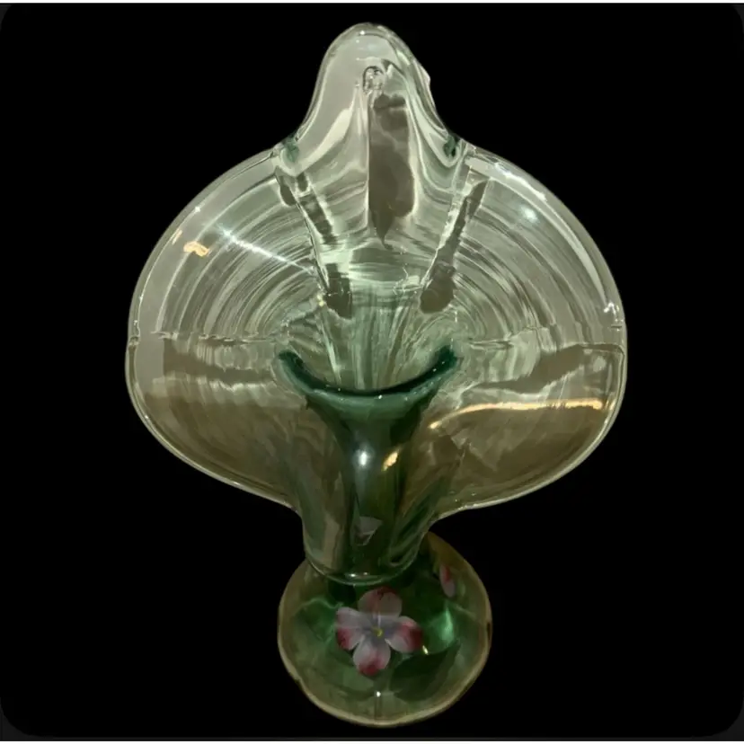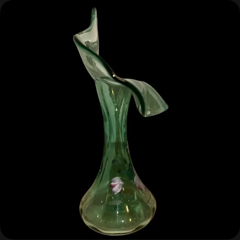 Absolutely stunning FENTON ‘Jack In The Pulpit” glass vase in Sea Foam Green. Hand painted floral and artist signed. Measures 10 3/4” tall x 6 1/4” wide and 3 3/4” deep. Fantastic condition with no chips or cracks.