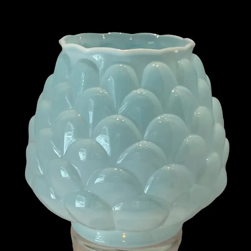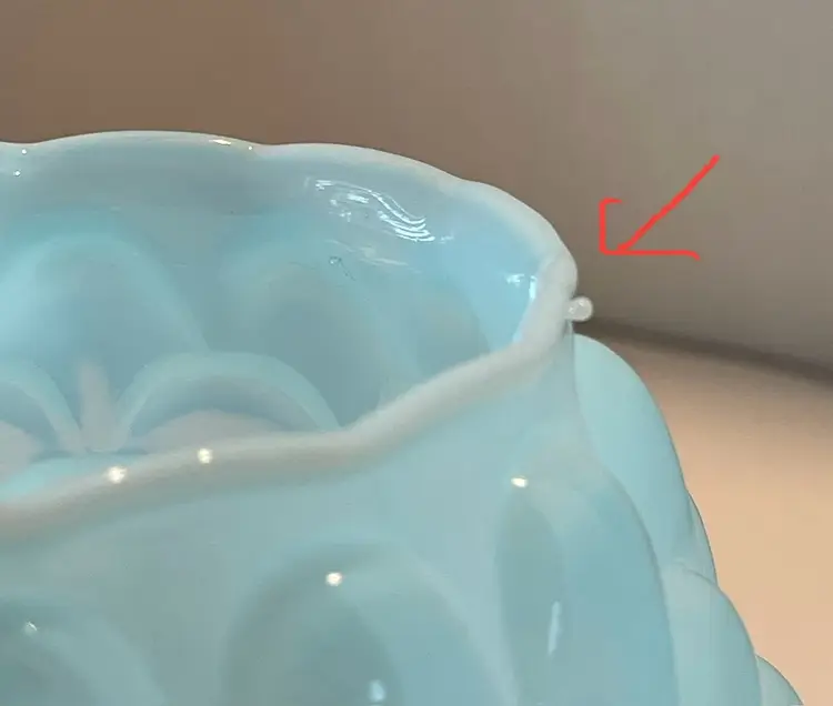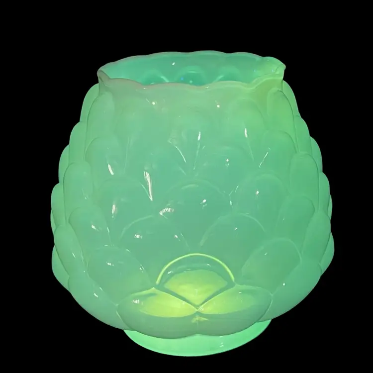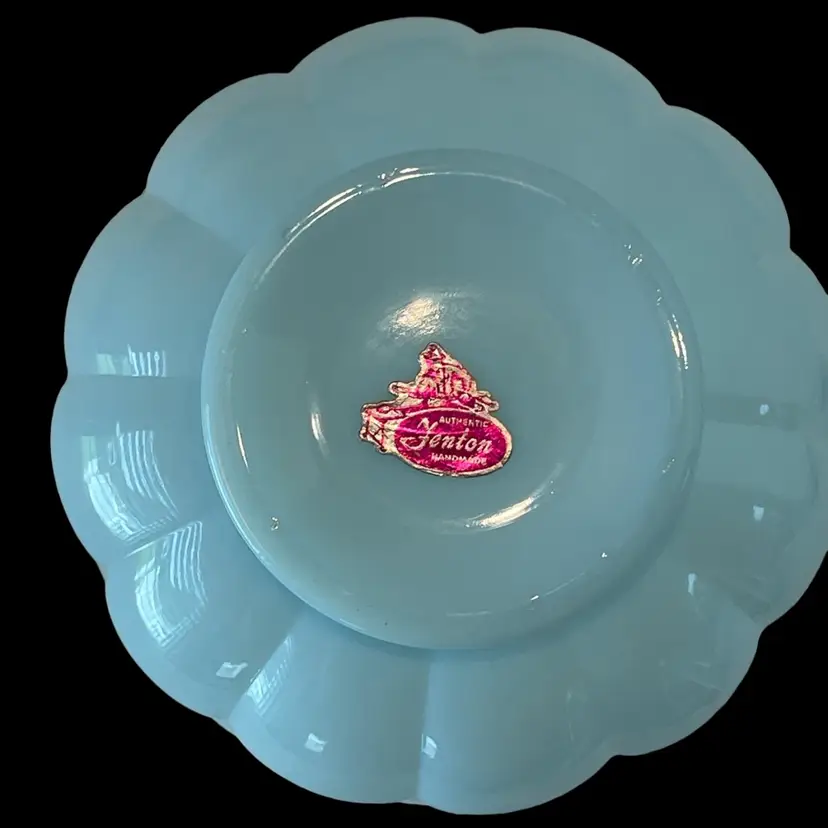 Condition: No chips, cracks, flea bites. Small piece of excess glass on top edge. Several small specs in the bottom from manufacturing process. Please see photos for reference. Fenton Label attached. UV glow with a 365 UV Light.