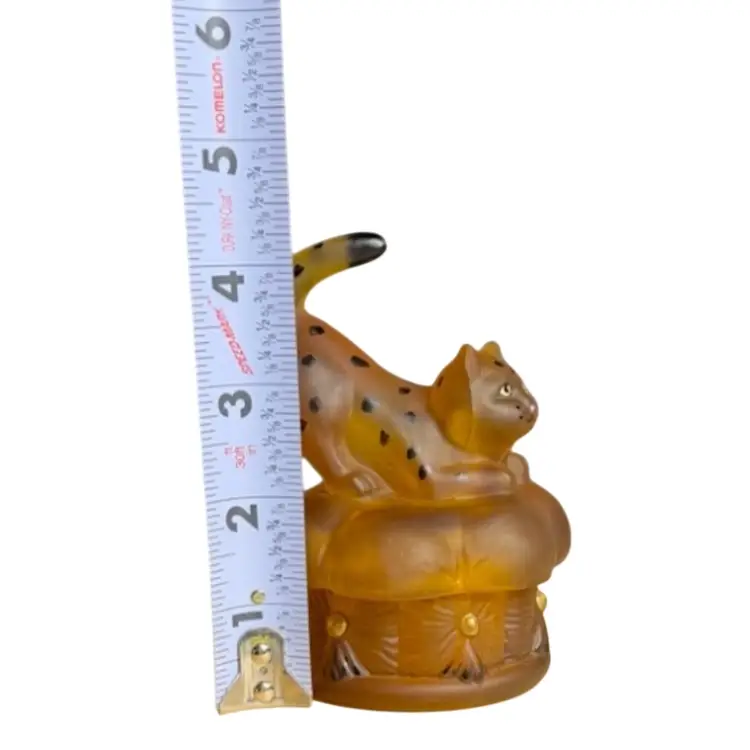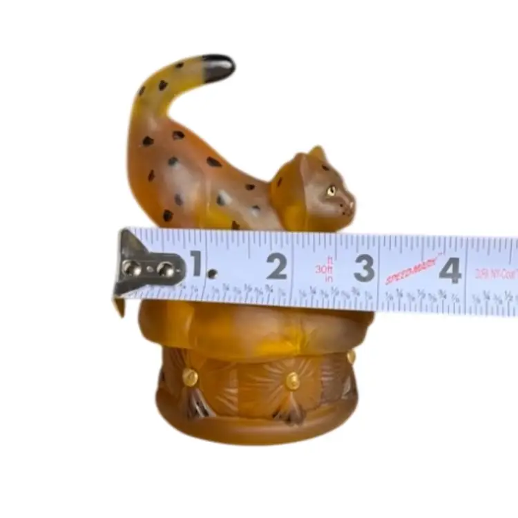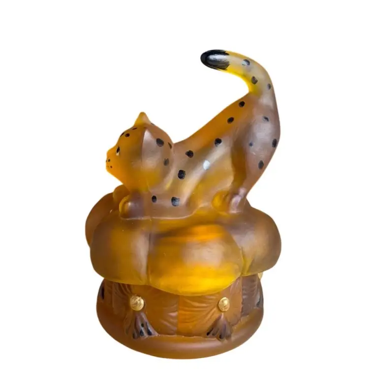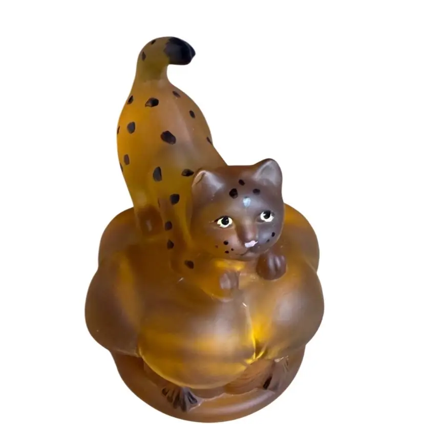 FENTON playful leopard cat covered trinket dish.