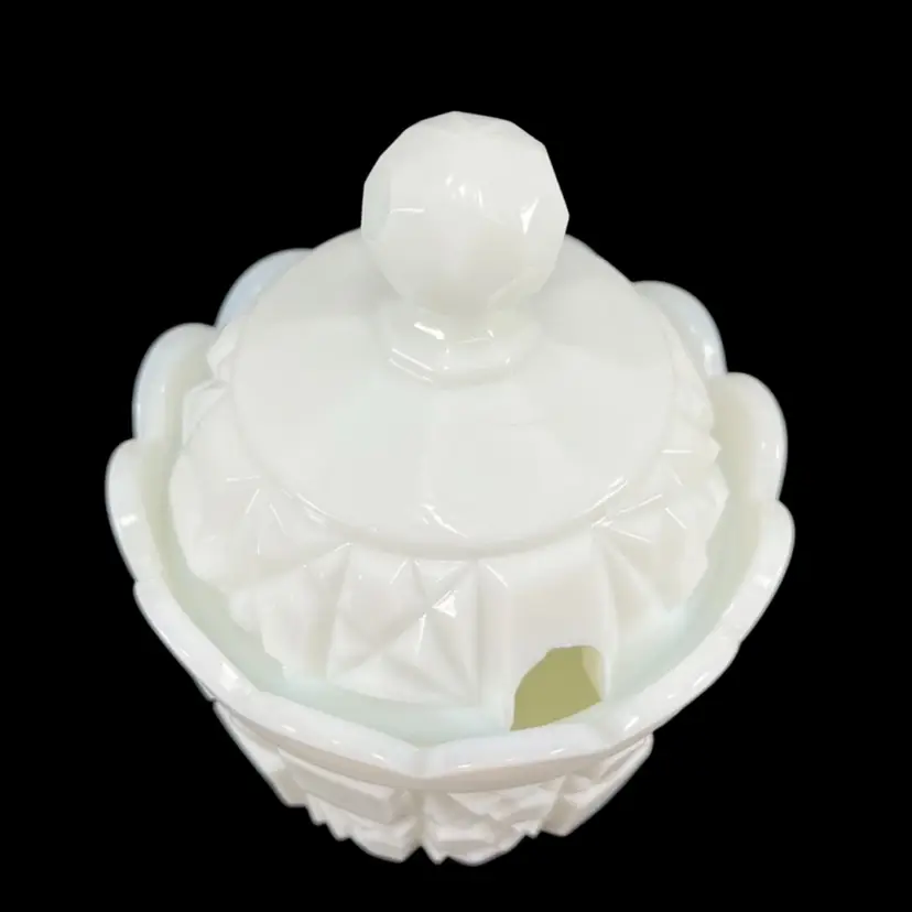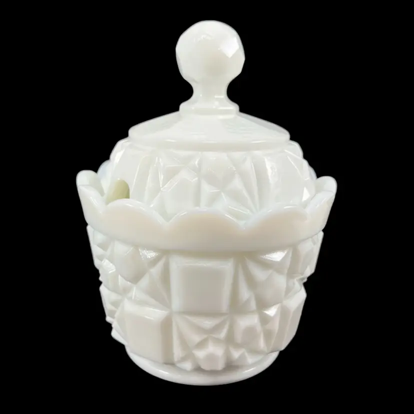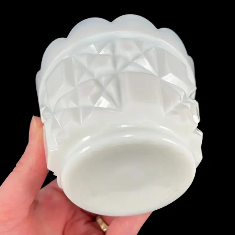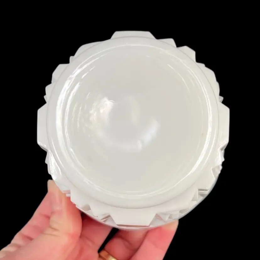 Approximately 5” tall and just under 3.75” inches diameter. No cracks. There are some flea bites around either side of the rim of the lid where the spoon would go. I tried my best to show them in the last two pictures, but they’re difficult to see.