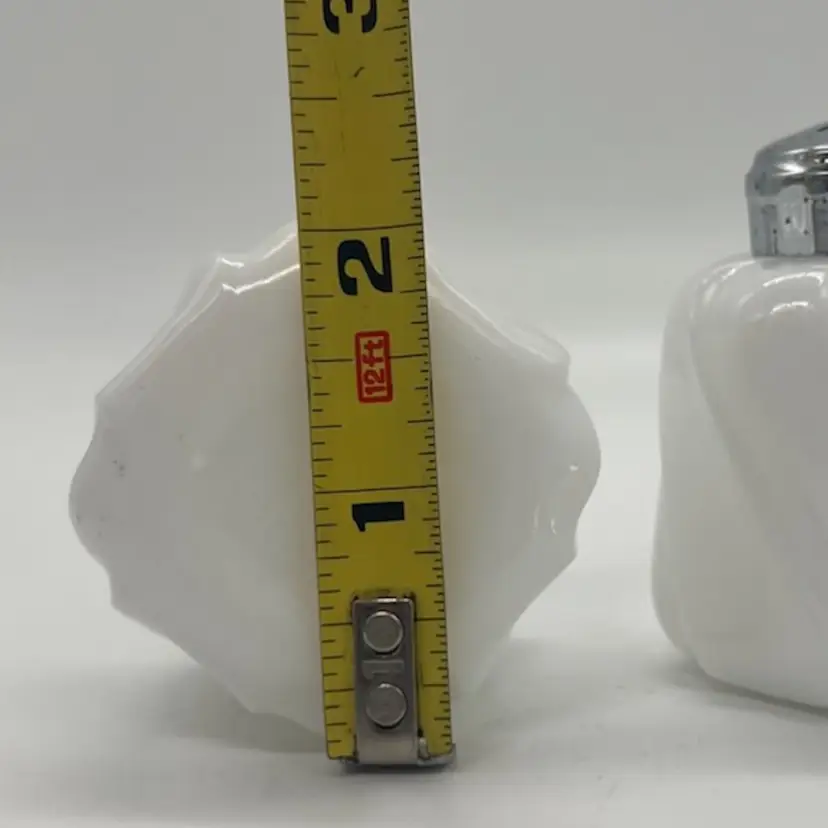 This pair is in excellent condition. There are no chips or cracks. They stand about 2 1/2” tall and are about 2” wide. They are short and squatty… super cute!