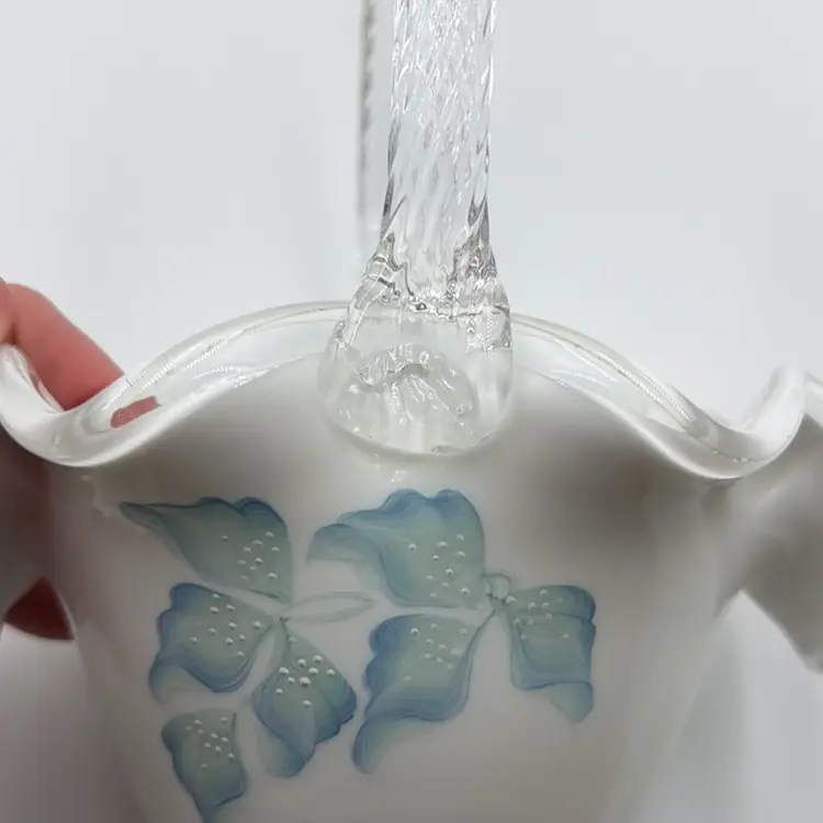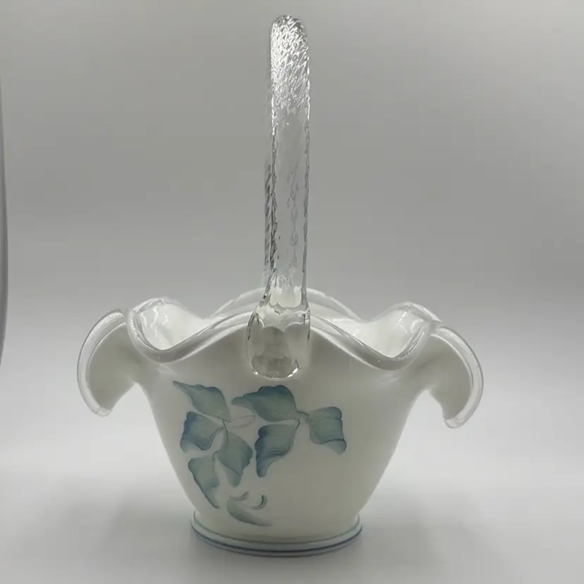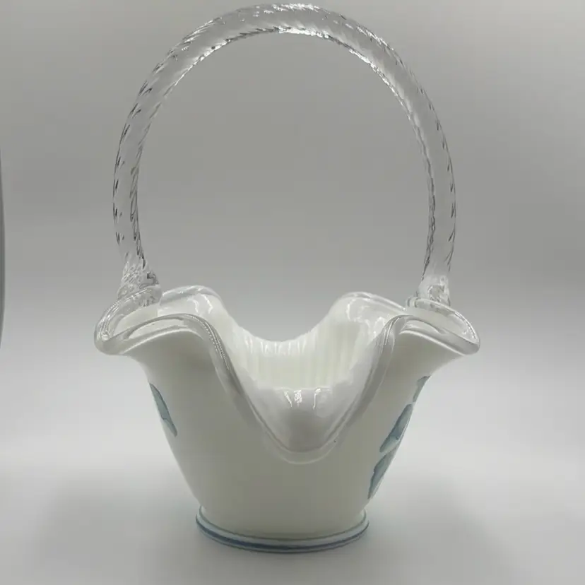 Fenton Morning Mist Silvercrest on Milk Glass Basket 6833CG.