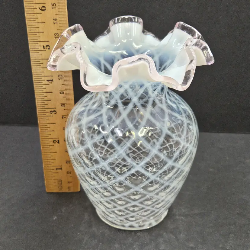 Fenton glass vase, 5.5"x4", unpainted sold factory seconds store, NO damage.