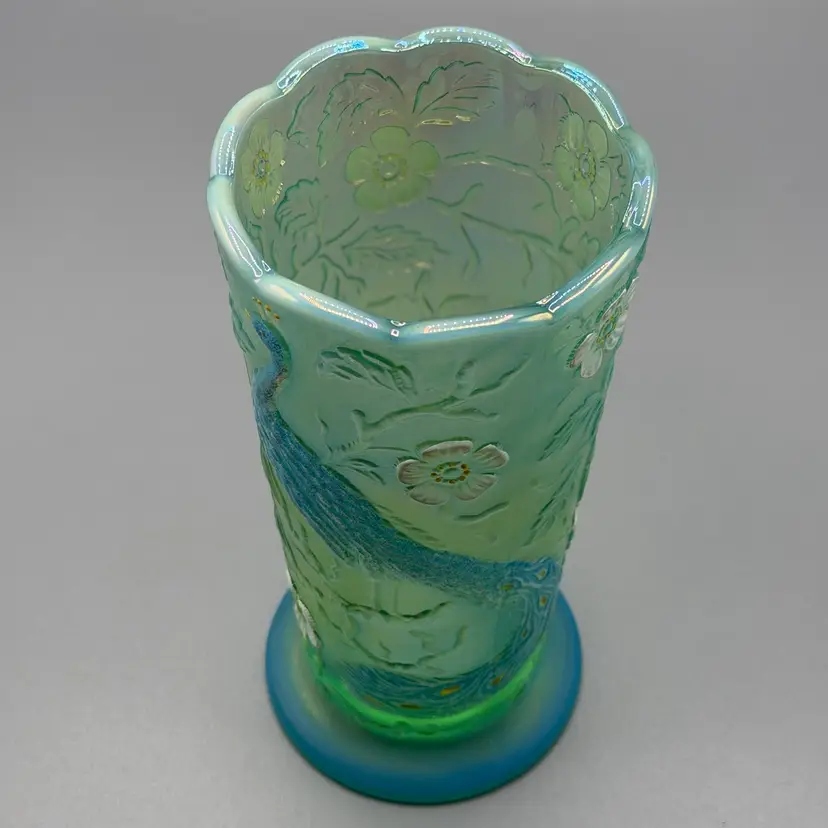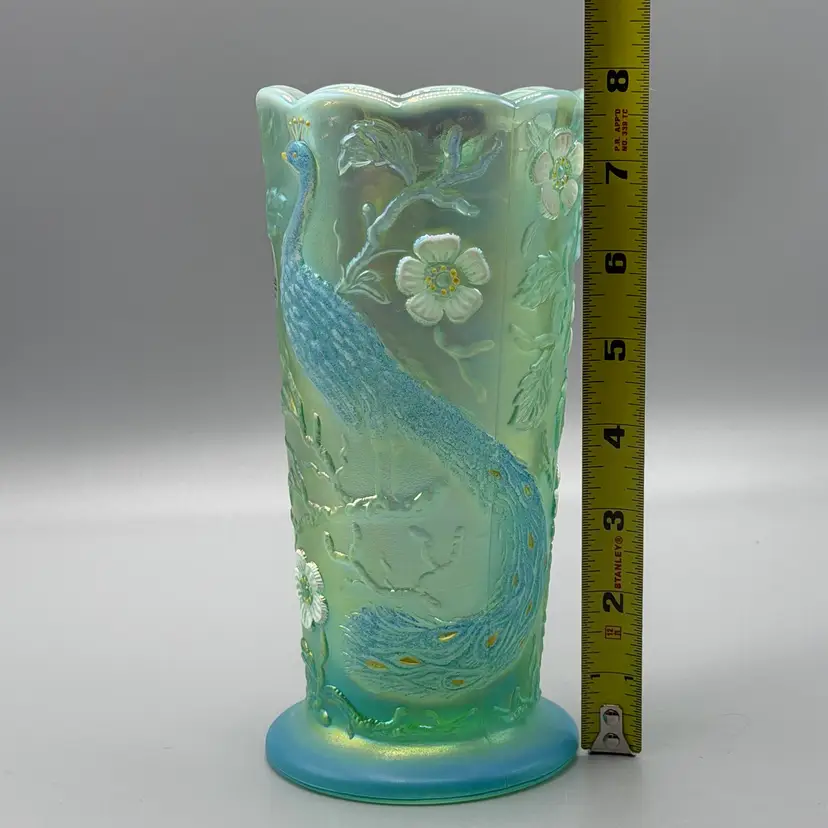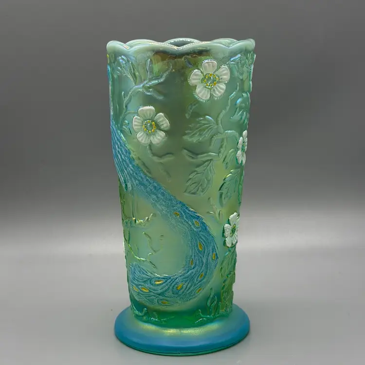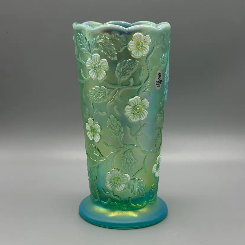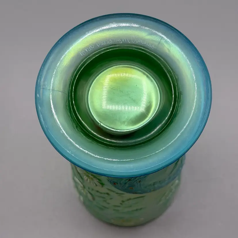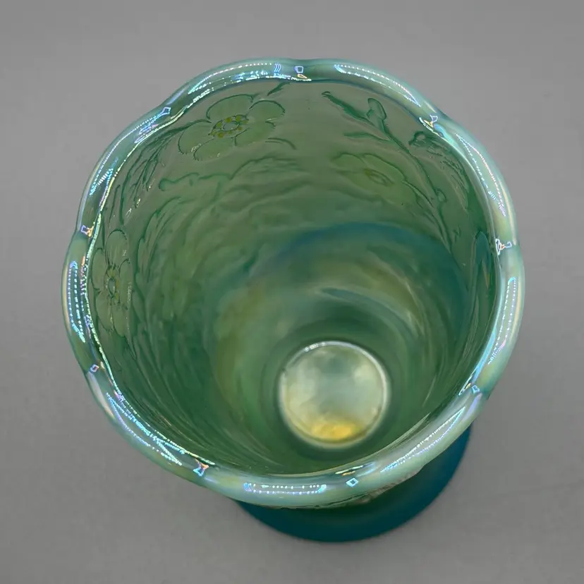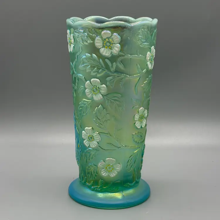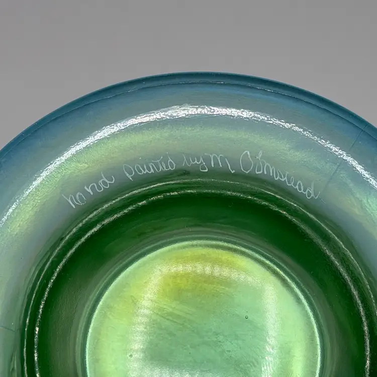 This beautiful vase is in good condition with no chips or cracks. The signed hand painted details are also in good condition with no signs of wear. The vase is about 7-3/4 inches tall.
