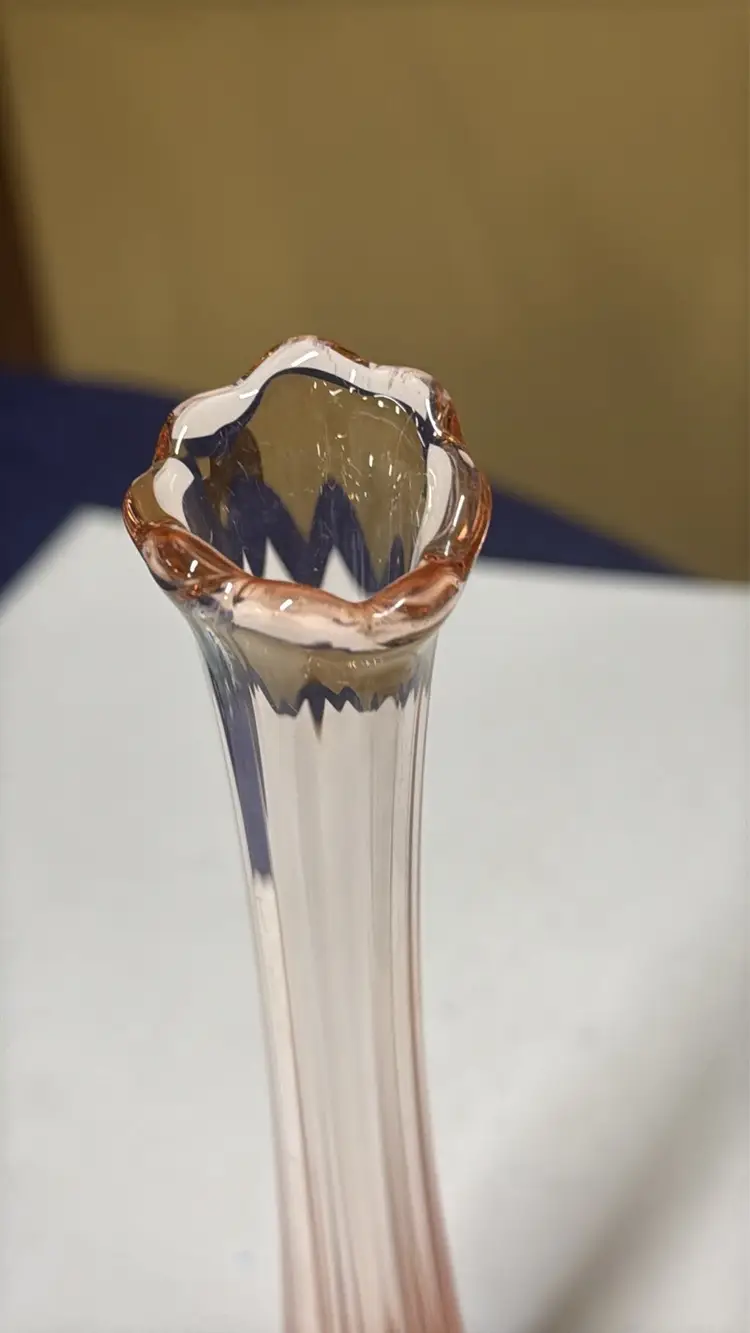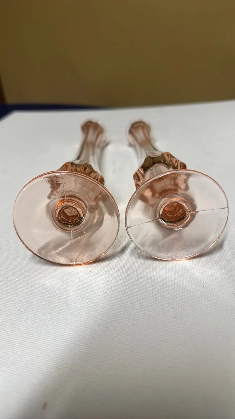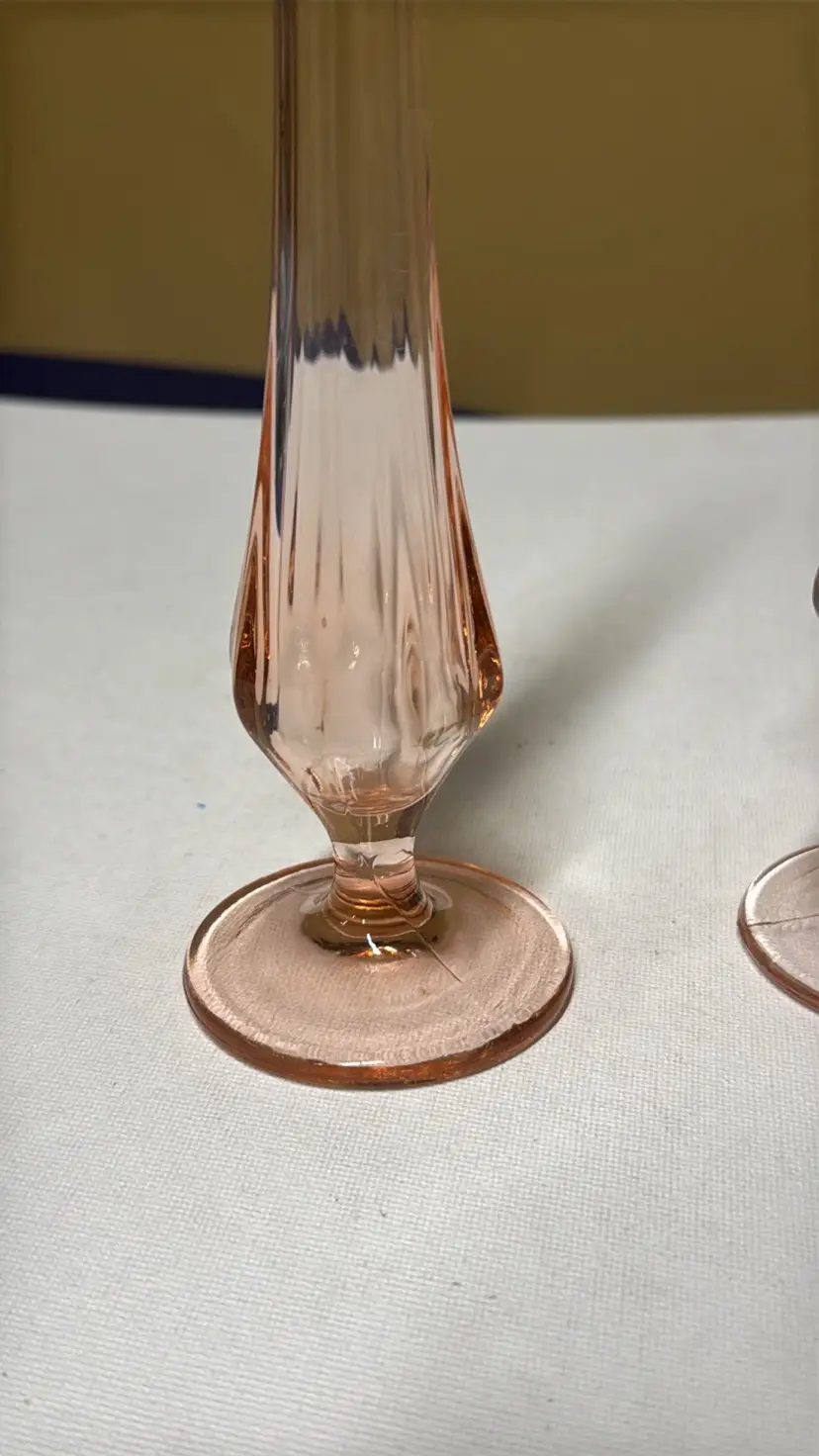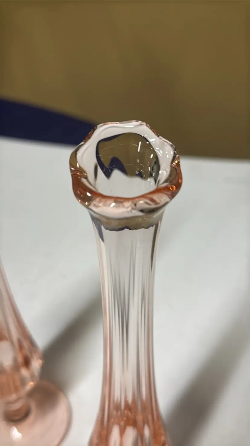 Pair of 8.5" and 9” Pink Swung Glass Bud Vases Add a touch of elegance to your home with these beautiful pink glass vases. Perfect for any decor style. Both are in excellent condition with no breaks or chips (8928182525w2121)