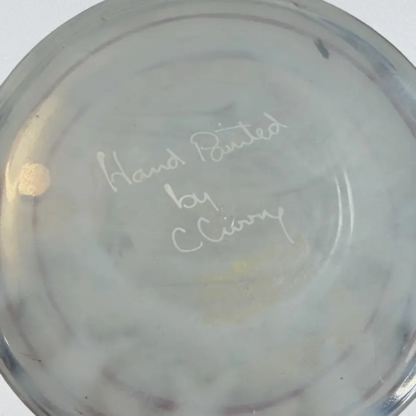 Has original sticker and is artist signed C. Curry. In excellent condition with no chips or cracks.