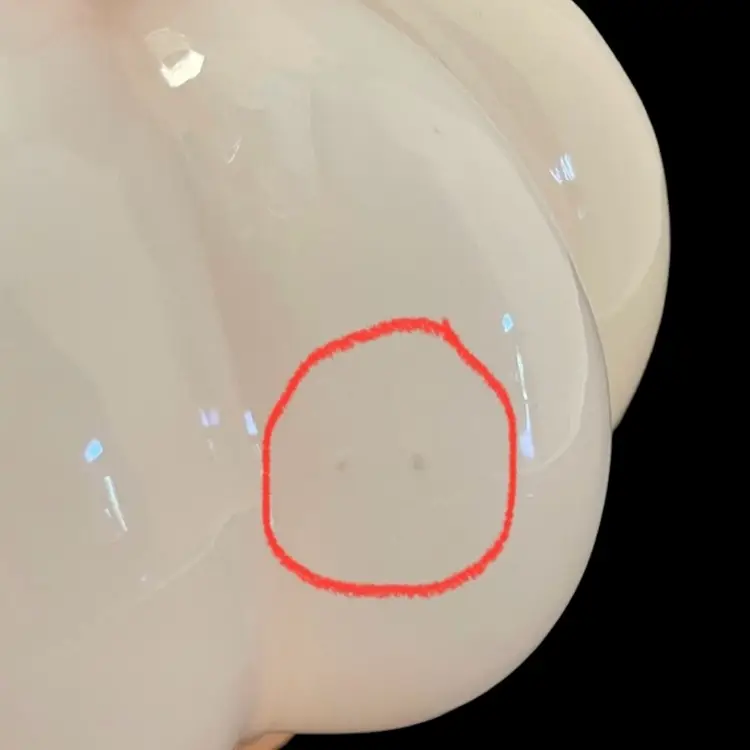 Conditions: Small crack/chip mfg defect? on top edge, two air bubbles, rust spot at the bottom, inside. Measurements: Approximately 7.75” T x 5” W. Please see pictures for condition and measurements as they are a part of the description. Approximately 7.75” x 5”. Thank you for looking!