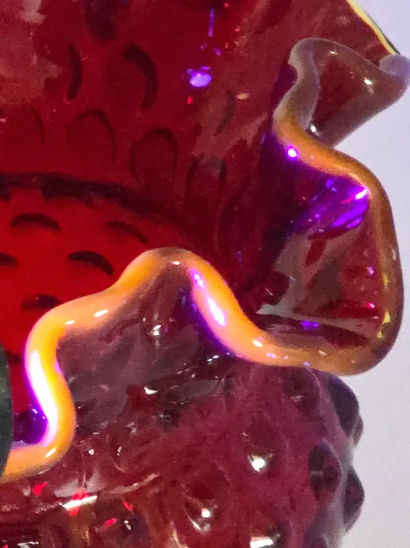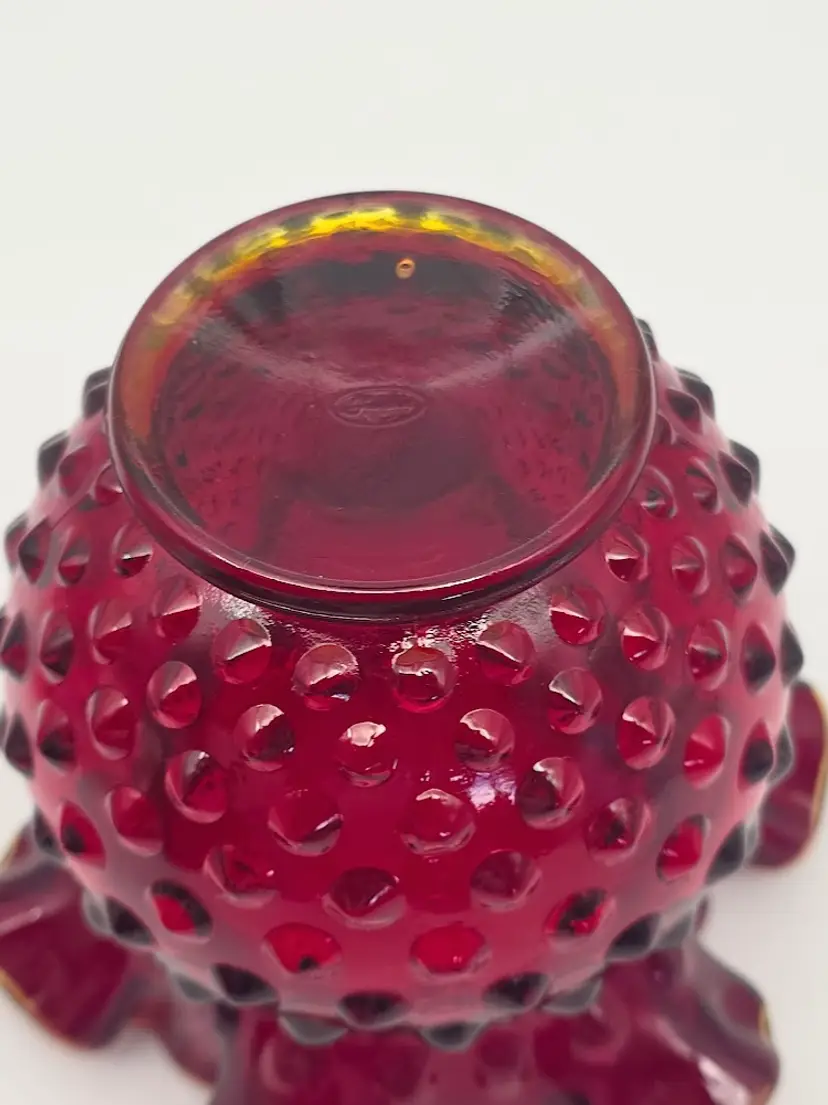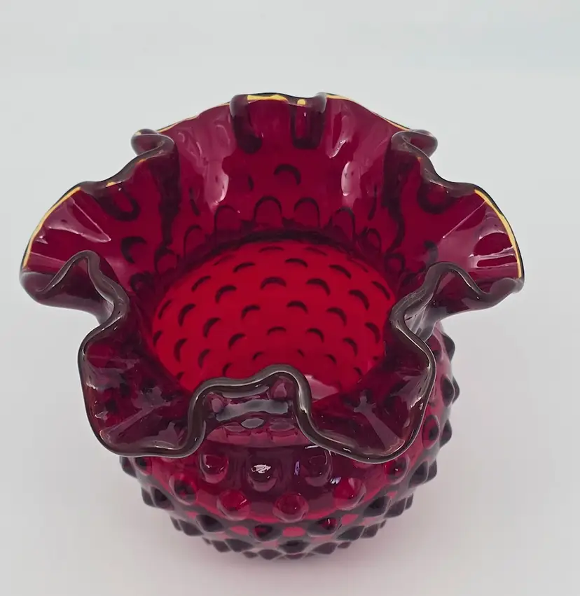 Fenton red cadmium hobnail rose vase - it glows! Has Fenton mark.