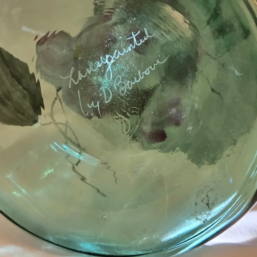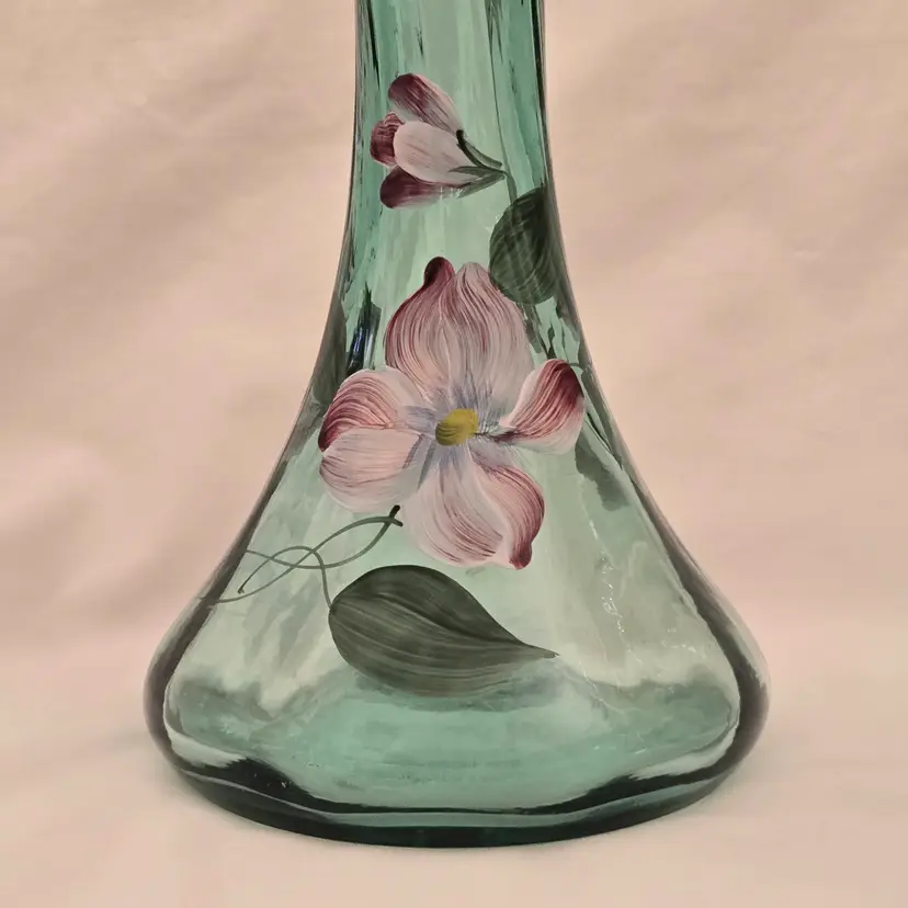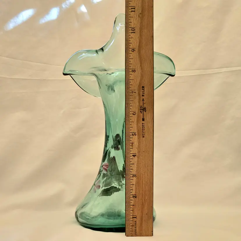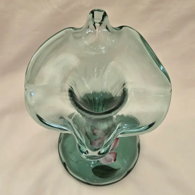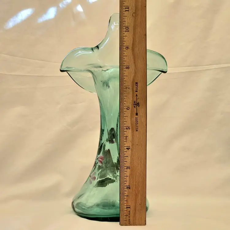 FENTON Ribbed Sea Mist Tulip Vase Jack In Pulpit Hand Painted Signed D Barbour. Used condition with some dust inside, dirt and manufacturer flaws. Please view all the photos and please ask any questions prior to purchase when possible.