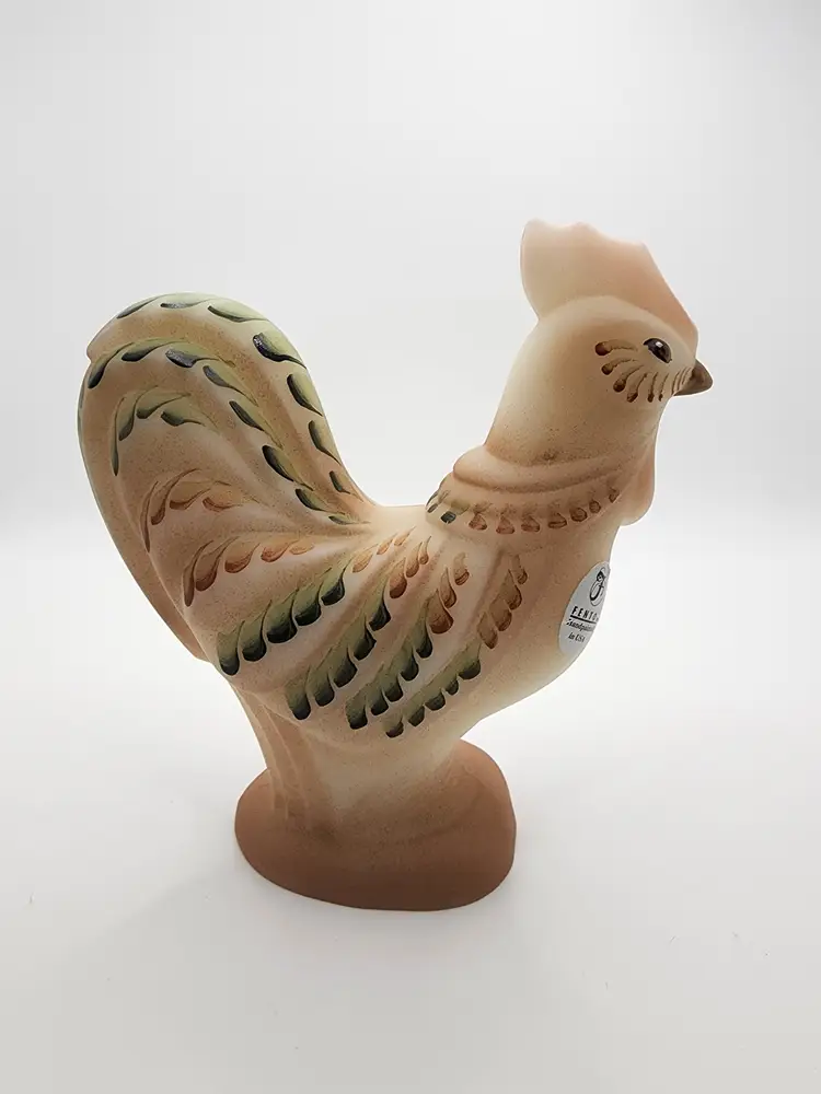 Charming Fenton rooster figurine with soft pastel hues. Perfect for adding a touch of whimsy to your collection. Stands 5 inches tall.