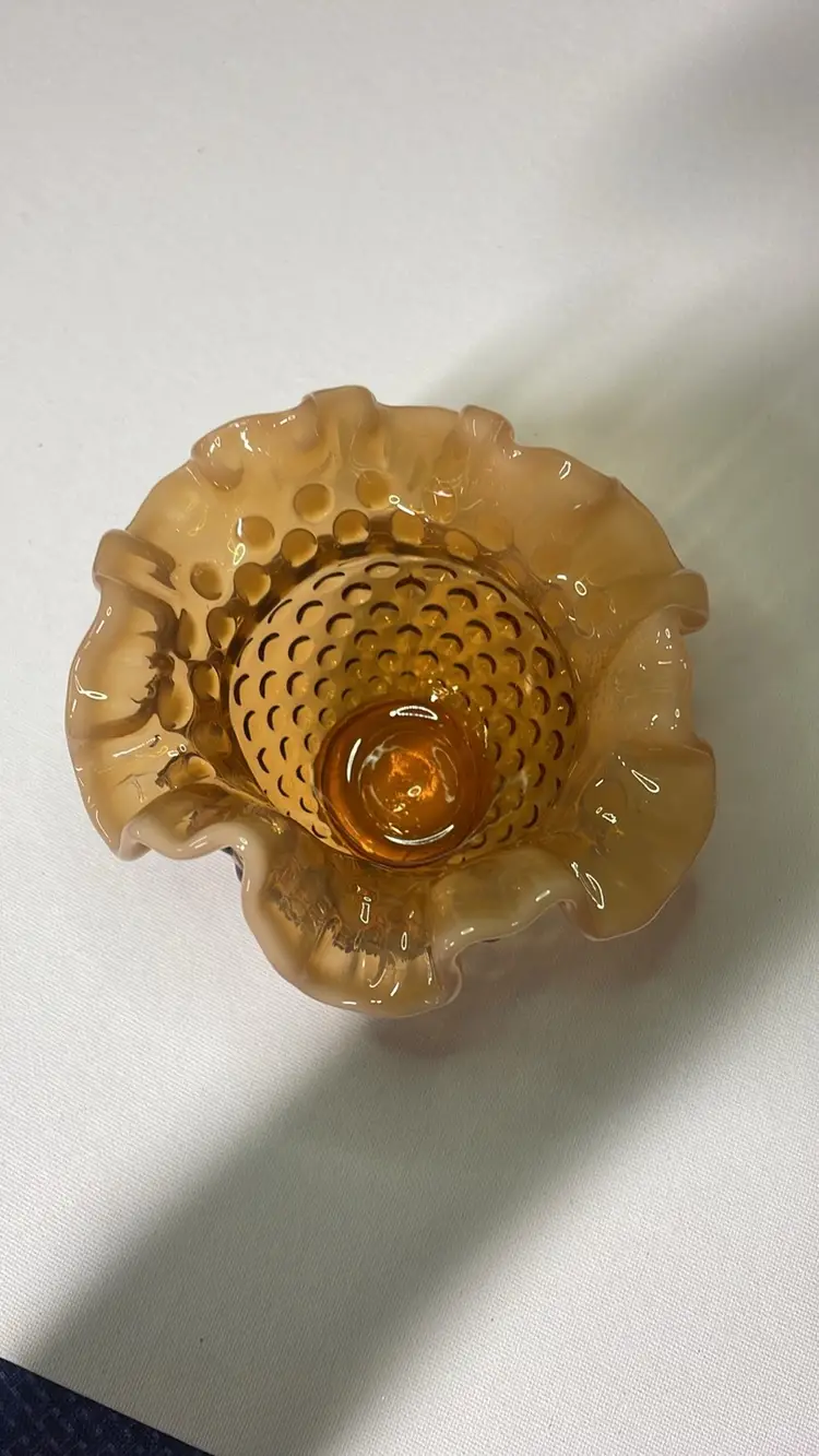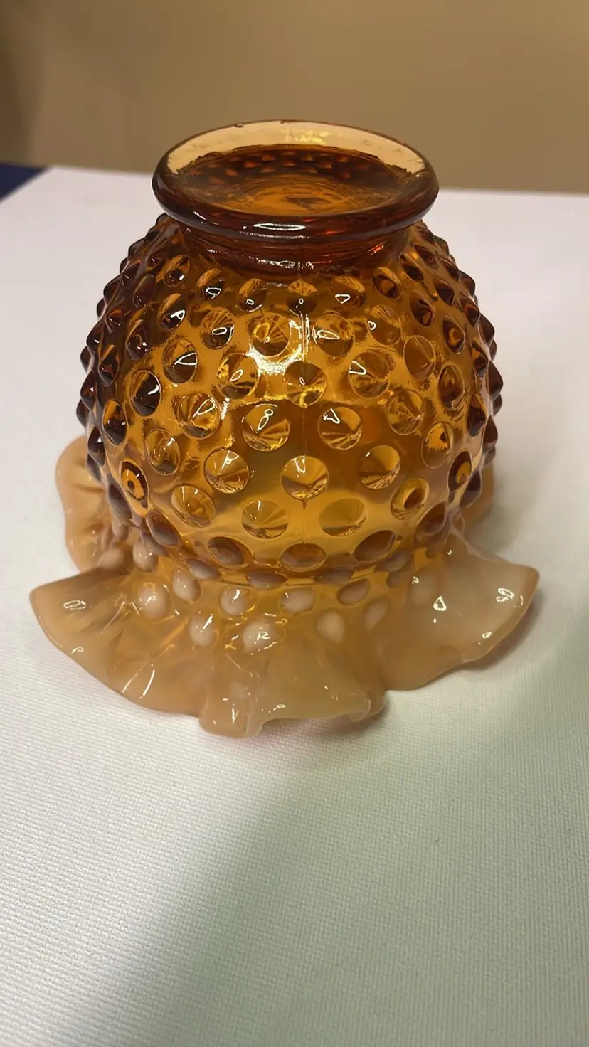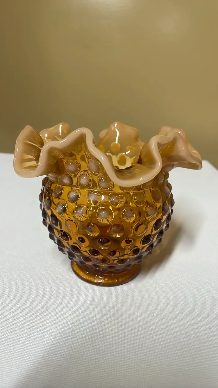 Fenton cameo Brown Opalescent Hobnail Glass Rose Bowl Vase 4 1/2" tall 5” diameter Beautiful in excellent condition one tiny rough spot on the bottom edge (magnified in the last picture) (28215248)