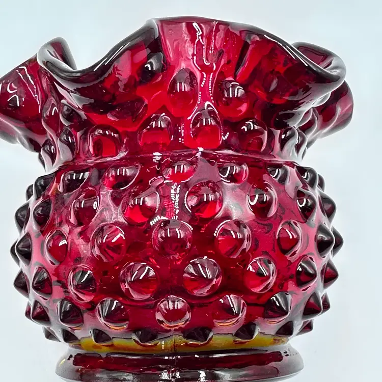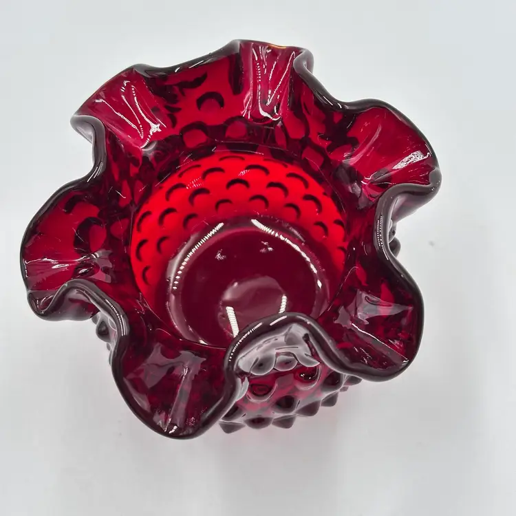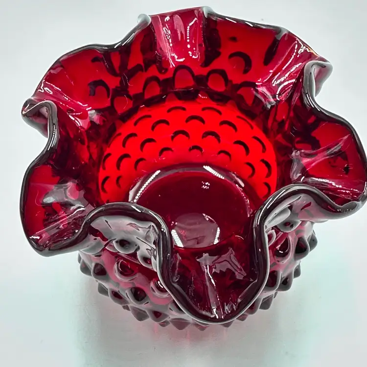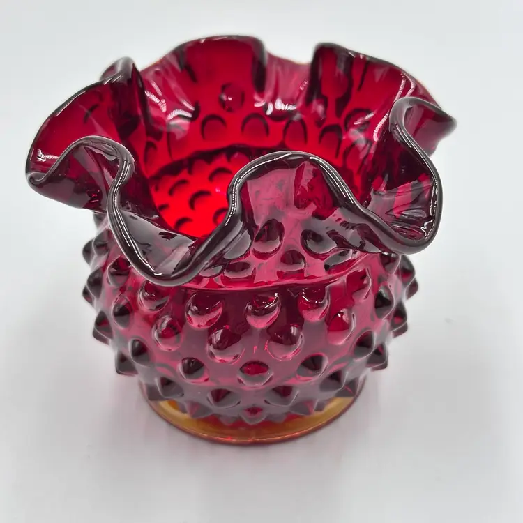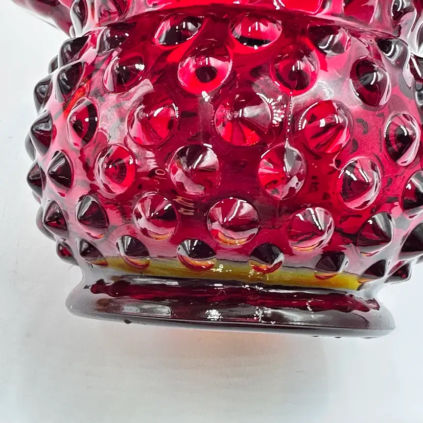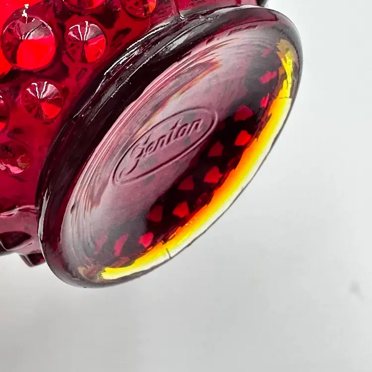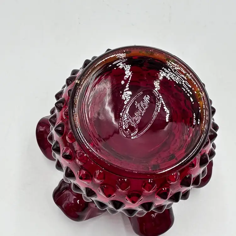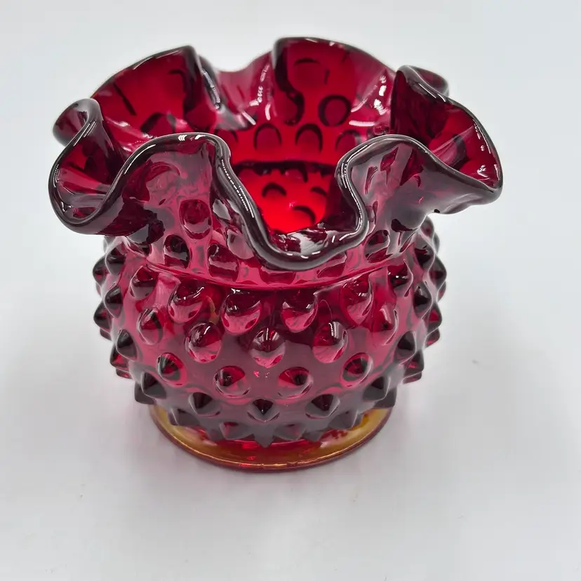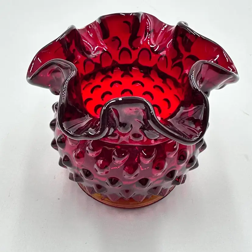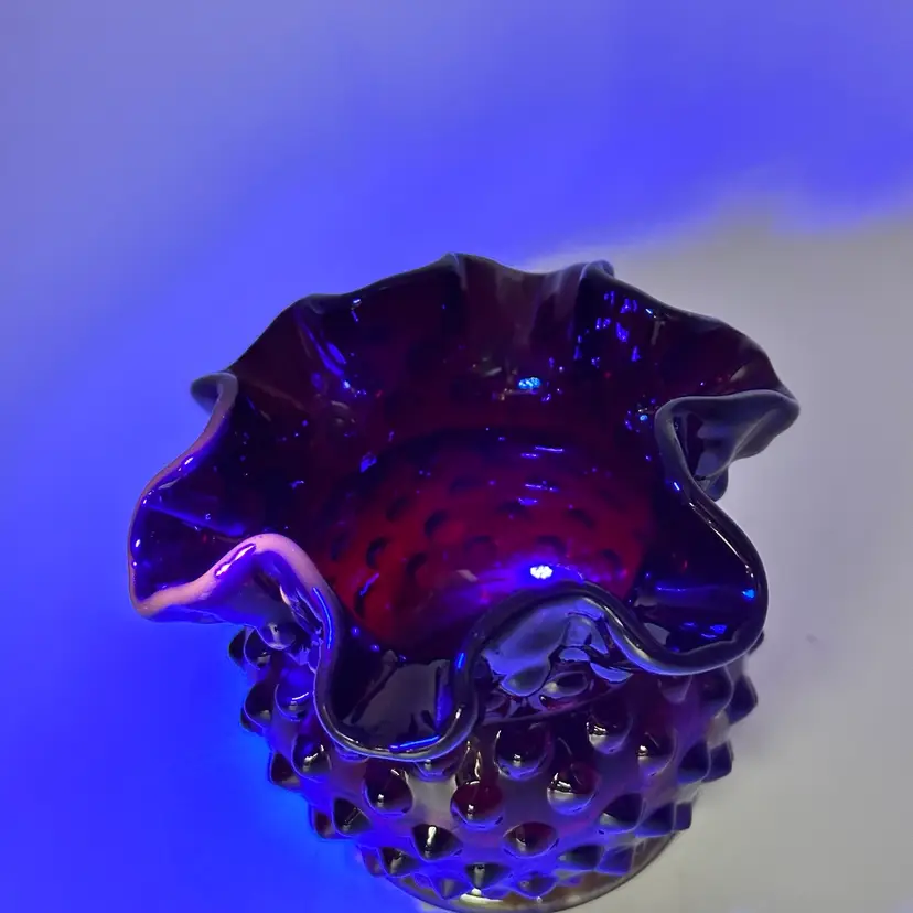In good condition. Does not have any chips or cracks. Measures 3 inches tall and 3 3/4 inches wide. The top and bottom rim glows under a black light.