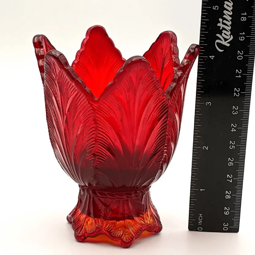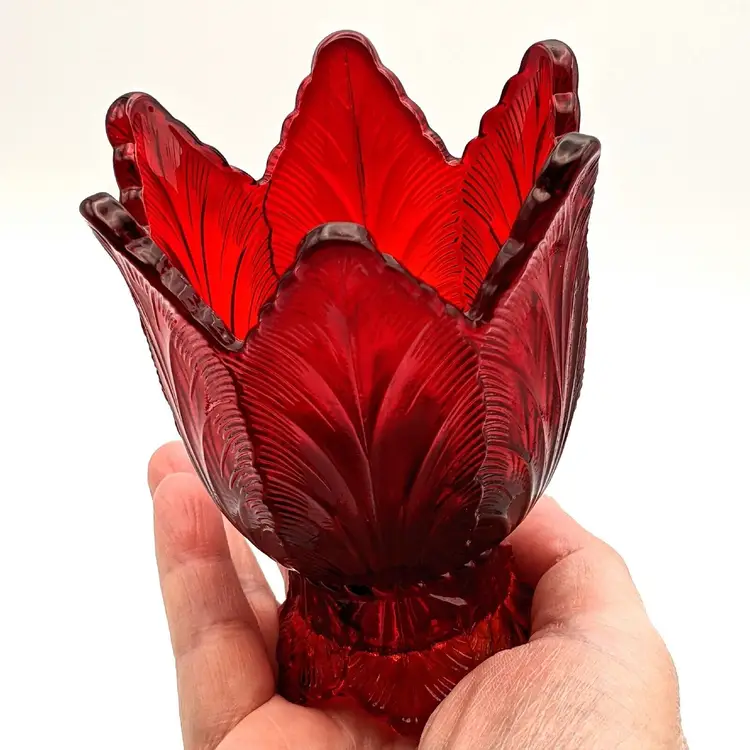 No chips, cracks or scratches Origin: United States Antique: No Custom Bundle: No MPN: 9596RU Year Manufactured: 1990 Additional Parts Required: No Suitable For: Taper/Dinner Candle, Tea Light, Votive Candle Vintage: Yes Item Height: 4.5 in Style: Art Deco Features: 3D Effect, Decorative, Textured Production Style: Ruby Glass Room: Any Room Finish: Glossy Handmade: Yes Item Width: 3.5 in Pattern: Tulip Color: Red Material: Glass Subject: Leaf Brand: Fenton Type: Candle Holder Era: Late 20th Century (1970-1999) Model: Votive Taper Candleholder Theme: Flowers Time Period Manufactured: 1990-1999 Country/Region of Manufacture: United States Item Weight: 10.4 oz Product Line: Fenton Art Glass
