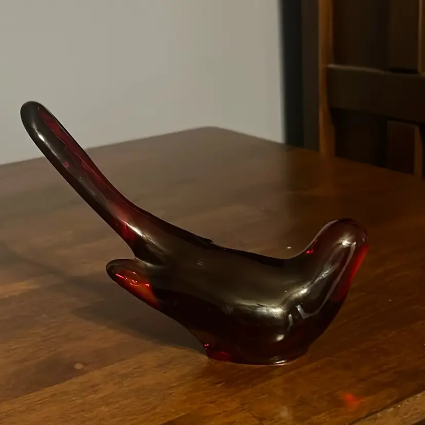 This particular bird figurine, with its stylized form and rich, dark color, aligns with the aesthetic of mid-century modern design. Such pieces were often created to add a touch of elegance and whimsy to interior decor. The craftsmanship involved in creating these glass animals, whether hand-blown or molded, contributed to their appeal as collectible items.