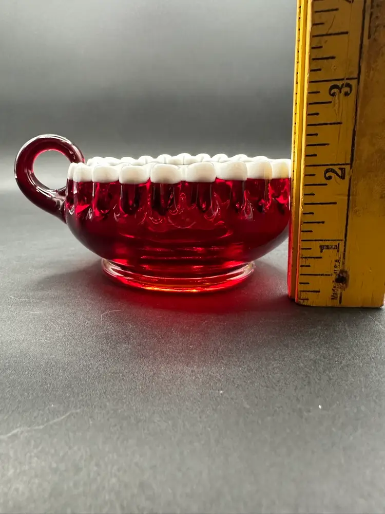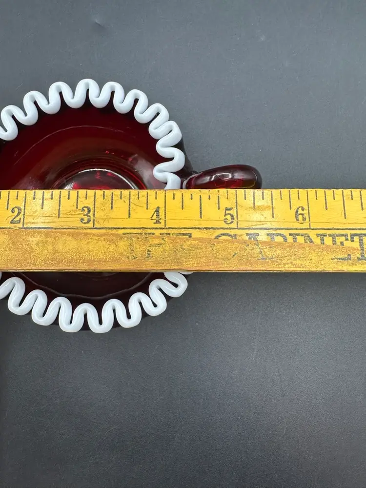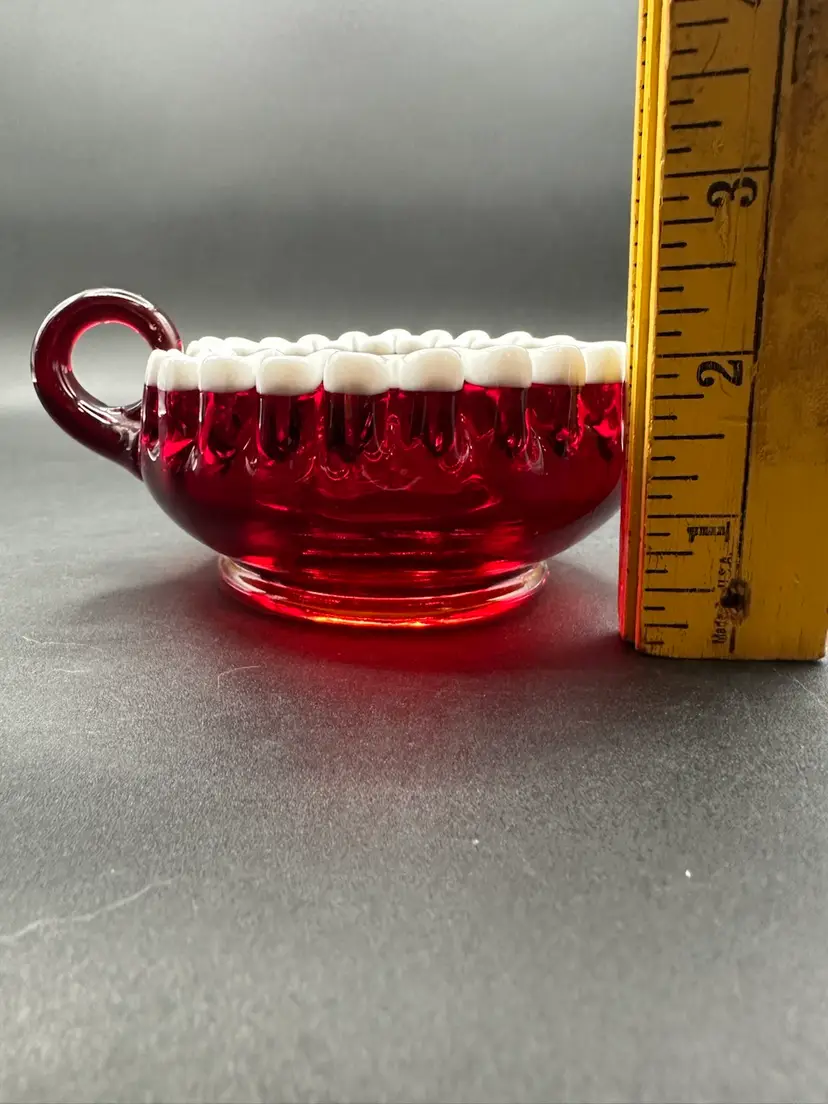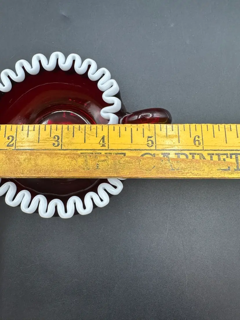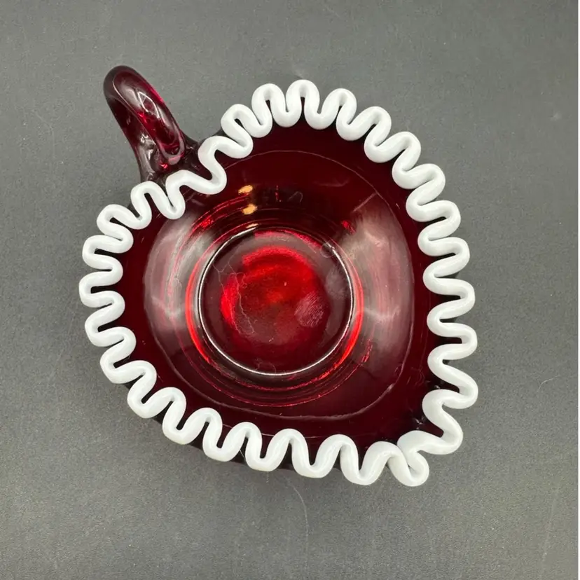 Absolutely gorgeous! The most festive Fenton piece I have had the pleasure of finding! No chips or cracks, glows in UV light. Stamped Fenton on the base!