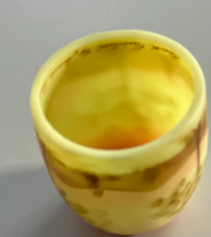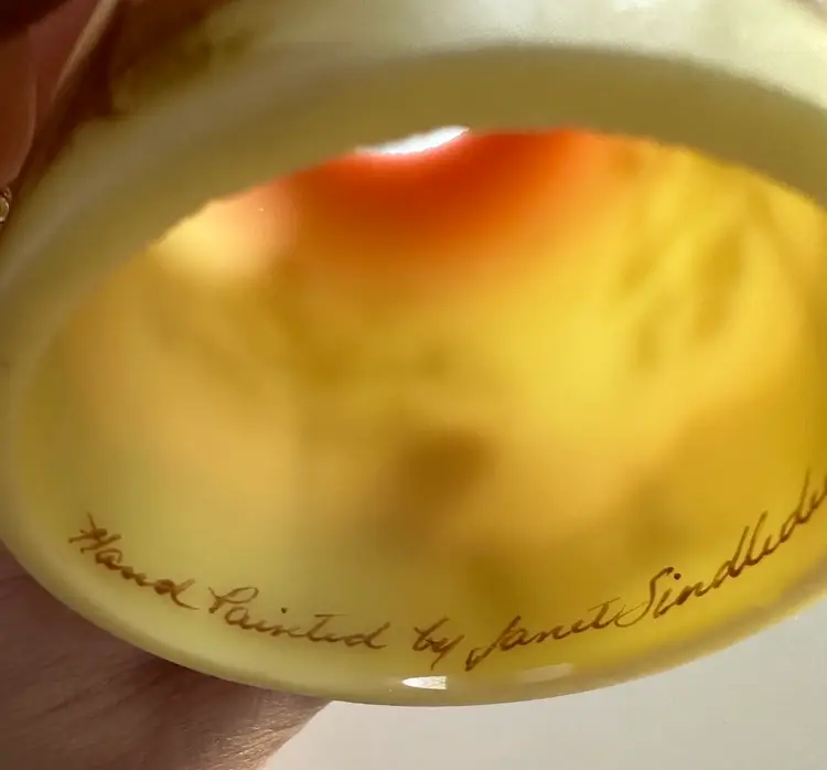 Custard Burmese fairy light shade Hand painted and signed by the artist. Please note. Shade only no base. Excellent condition. No chips or cracks. Glows.
