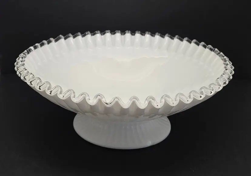 Fenton Silver Crest Footed Crimped Console Fruit Bowl