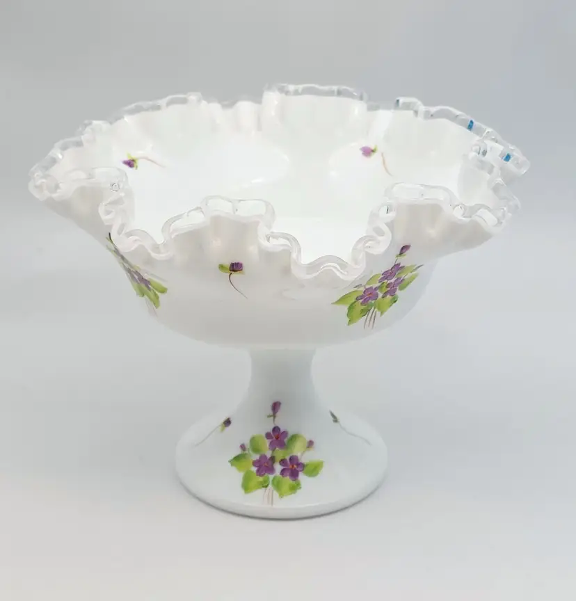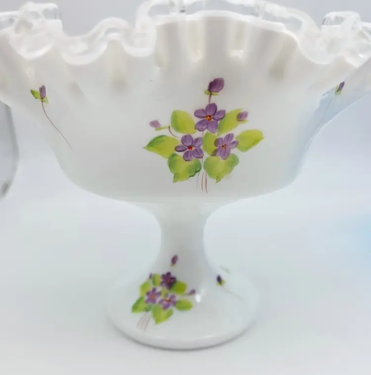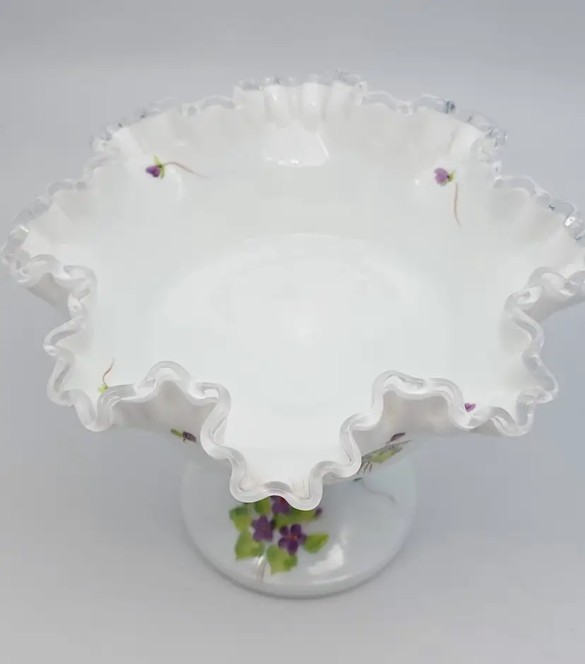 Fenton Silver Crest Hand Painted Ruffled Compote Signed