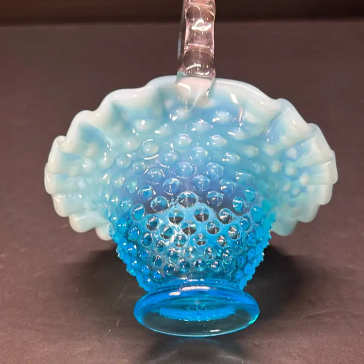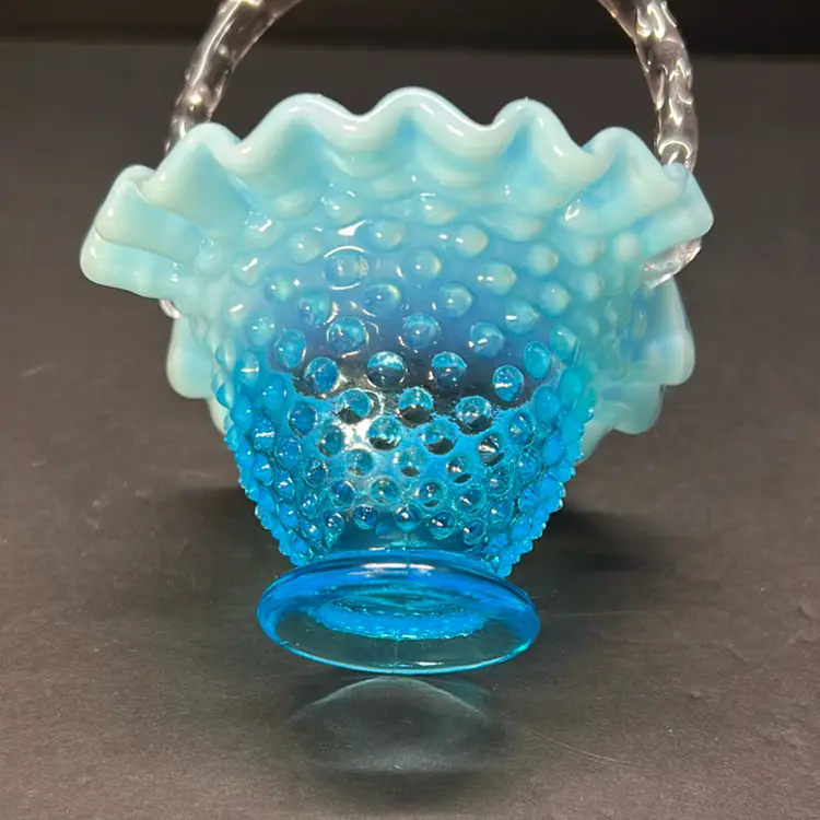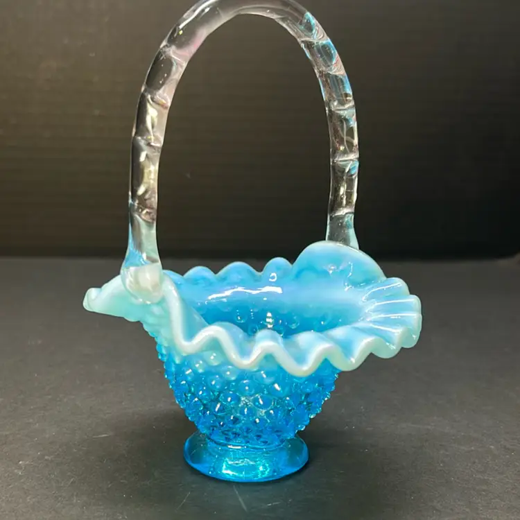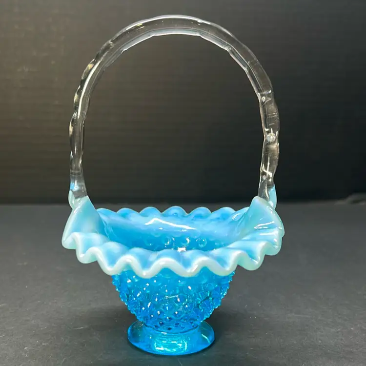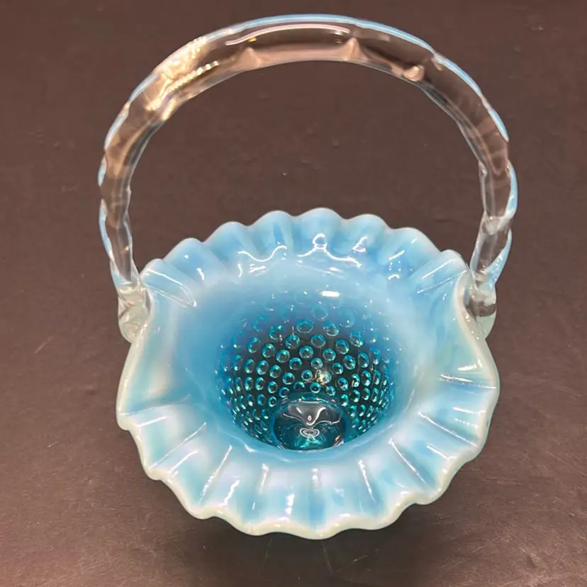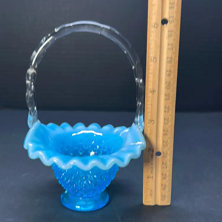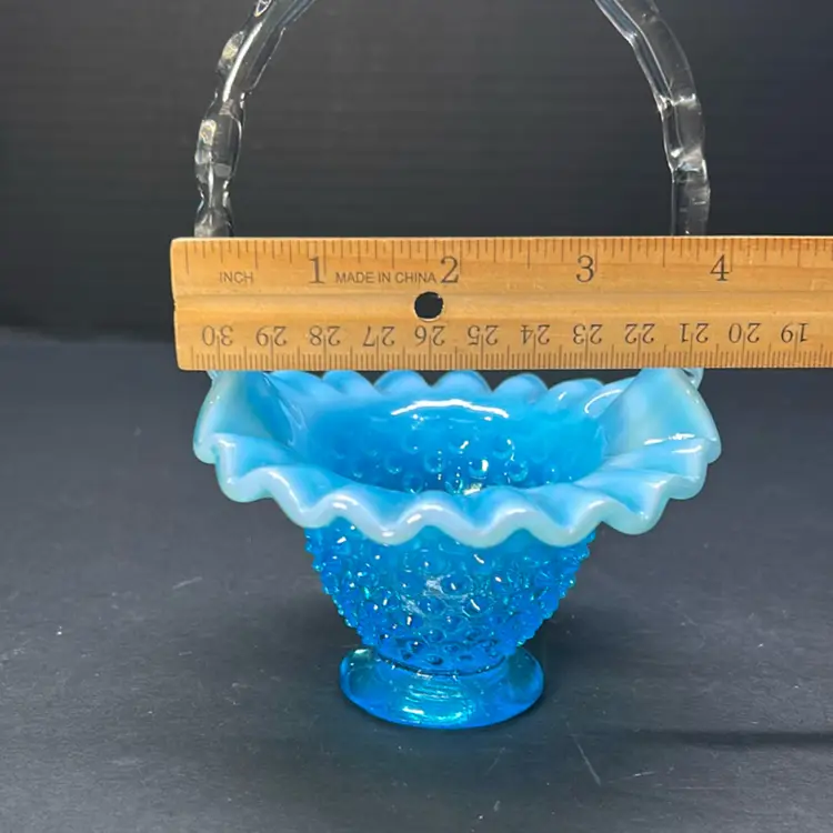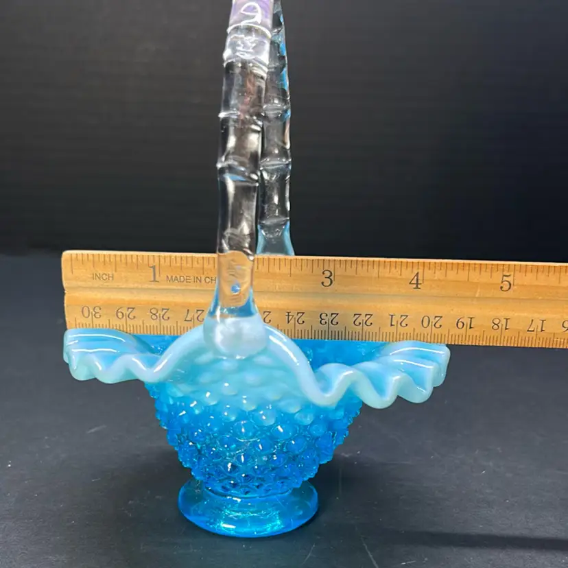 This basket is 6” tall, 4” wide and 4 1/2” deep. There are no chips or cracks. This is unsigned.
