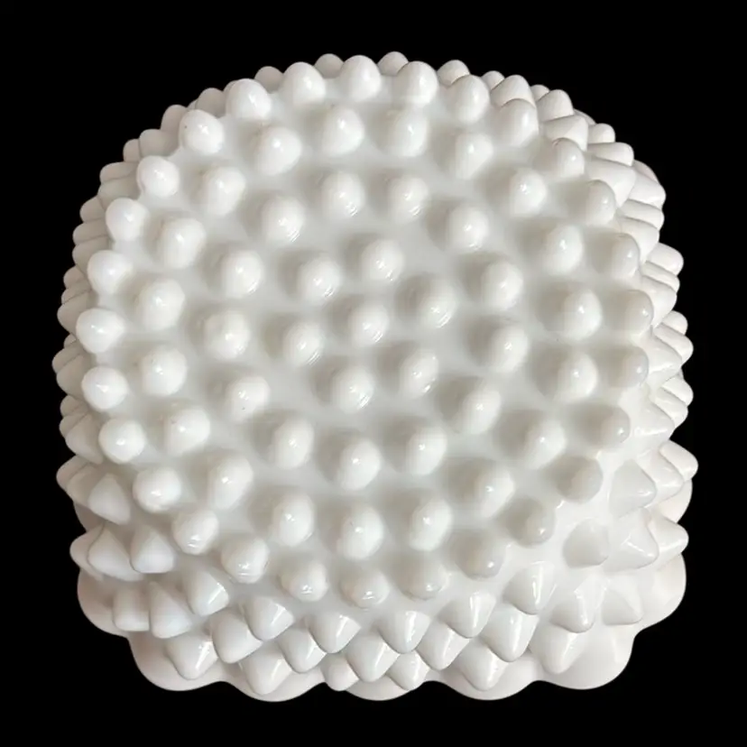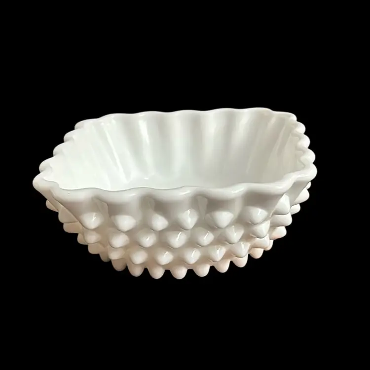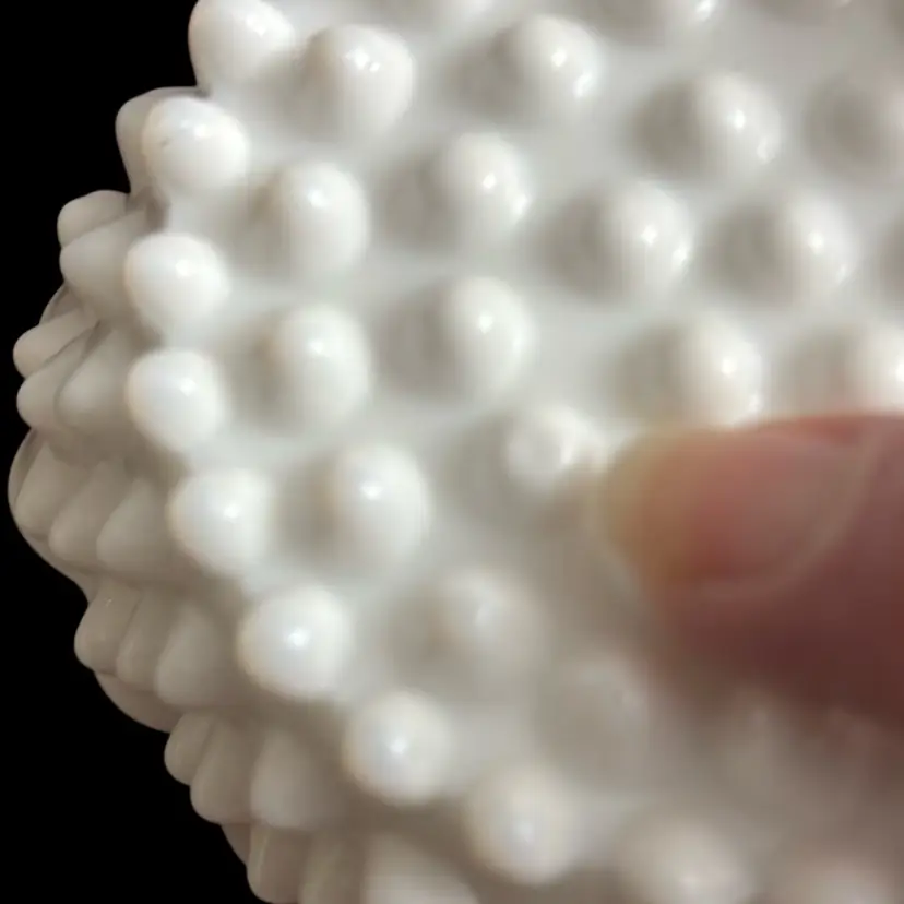 No chips or cracks. 1 hobnail on bottom is pushed in. 4” dia
