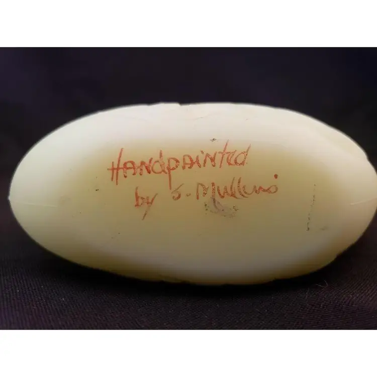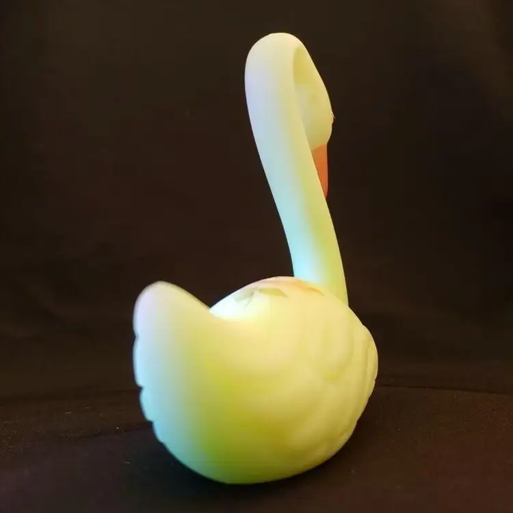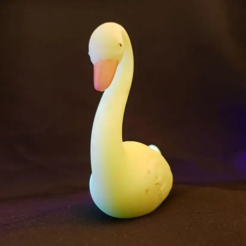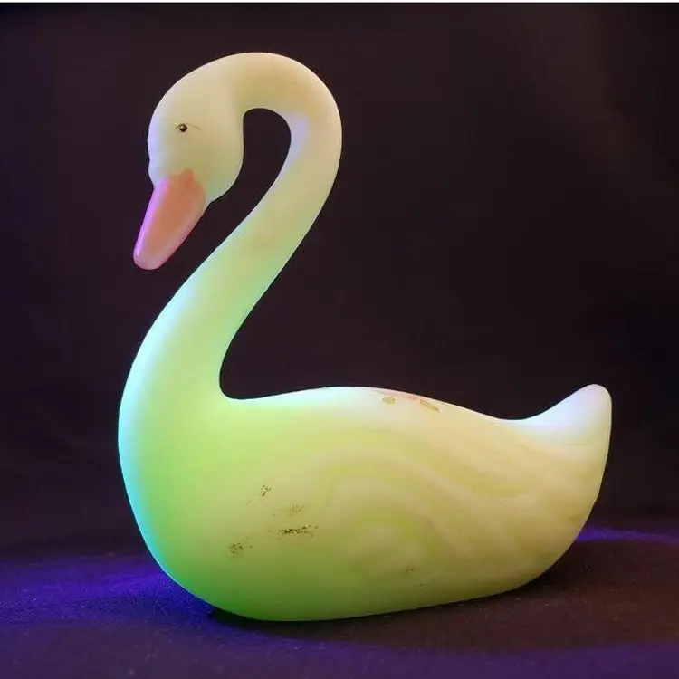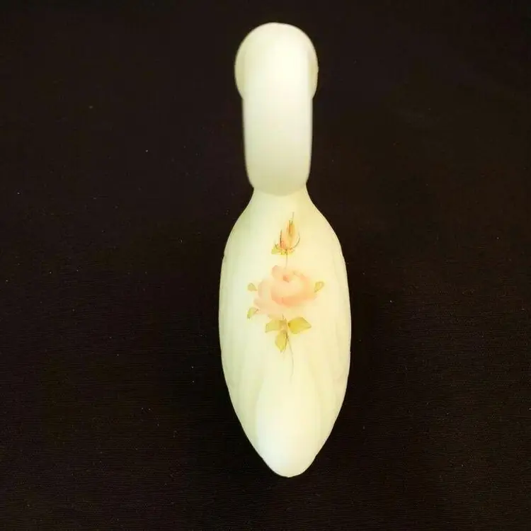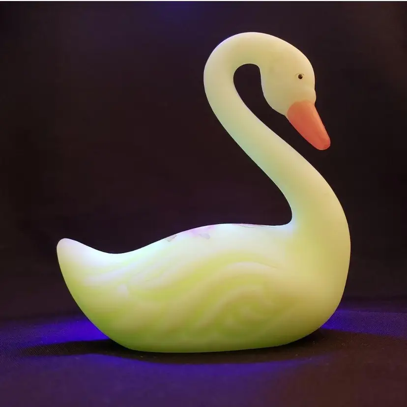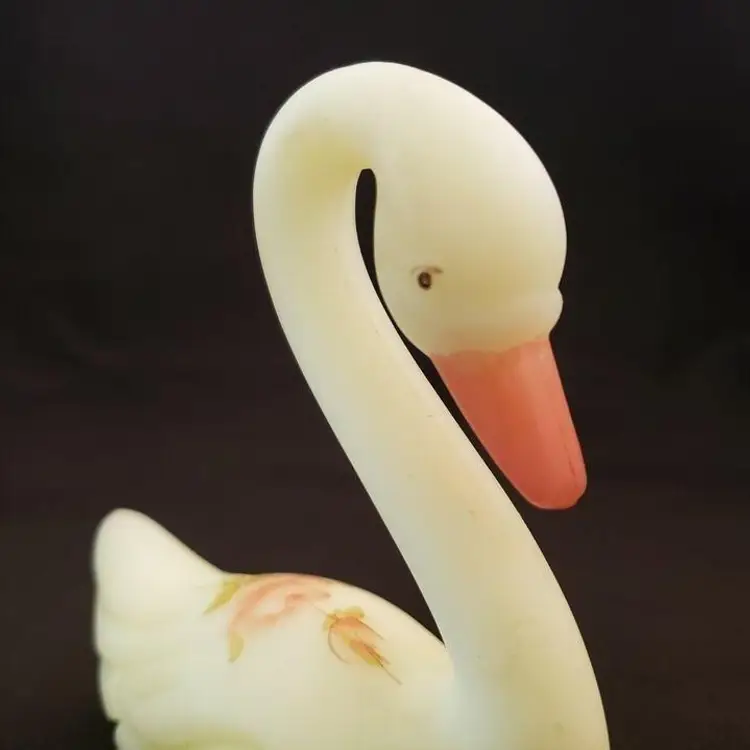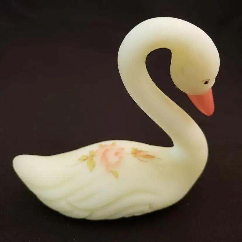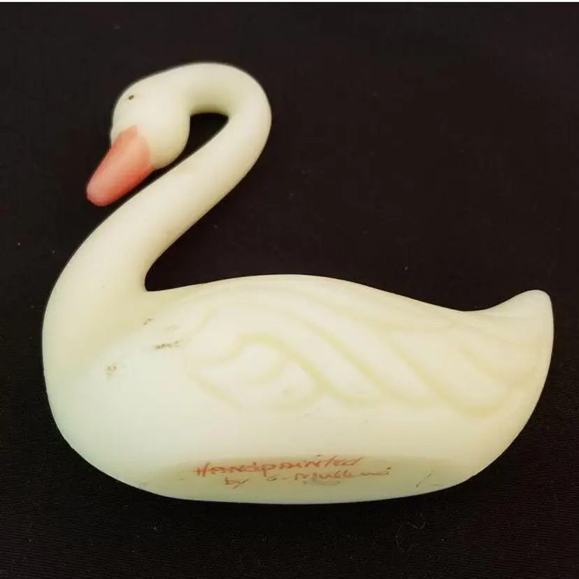 Fenton Swan Uranium Custard Satin Glass Handpainted Flowers Signed on Bottom. Approximately 4 3/8" tall x 4" long. Condition is "Used" with some scuffing, dirt, stains, etc. Looks good other than the aforementioned. Shipped with USPS Ground Advantage Mail. #0348