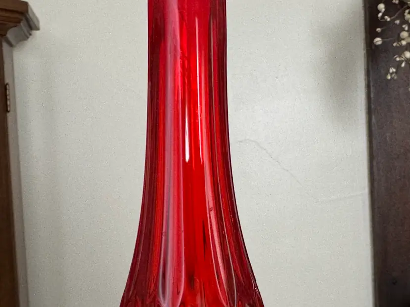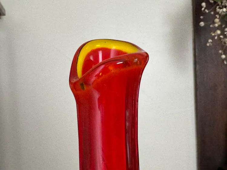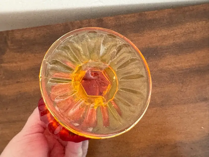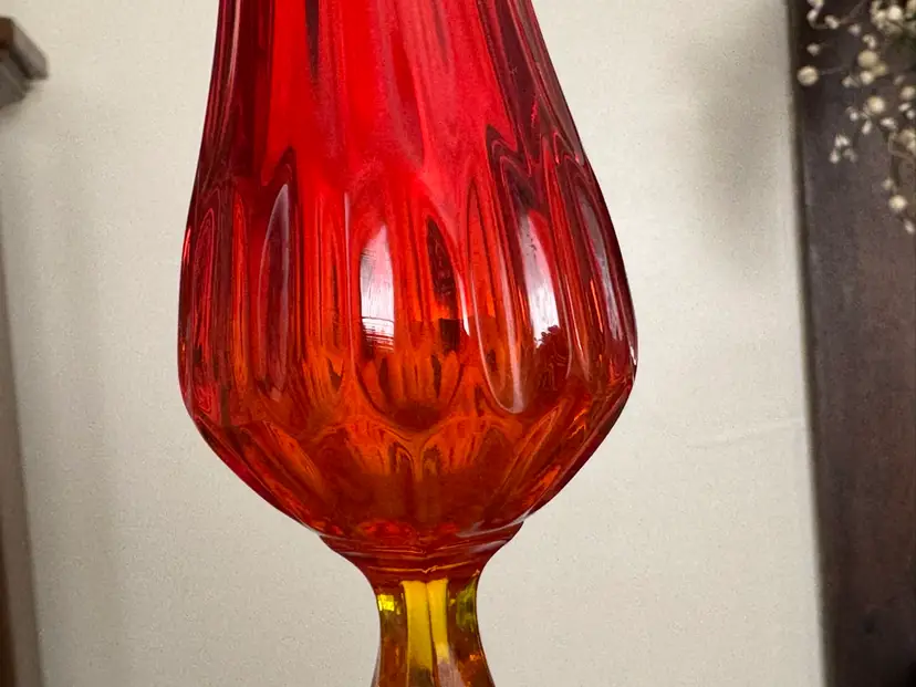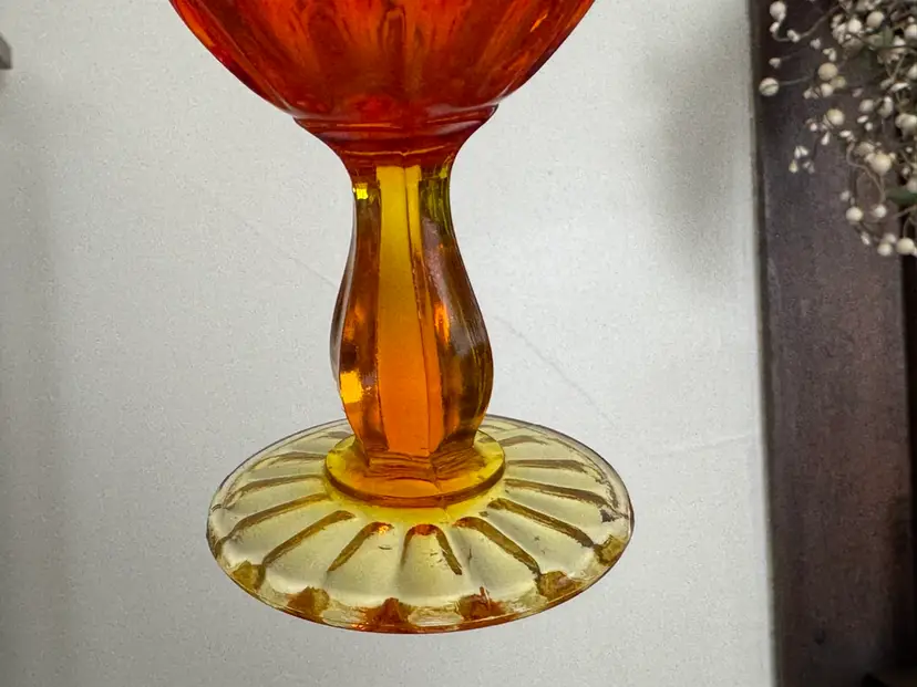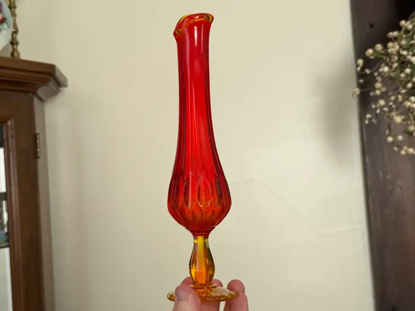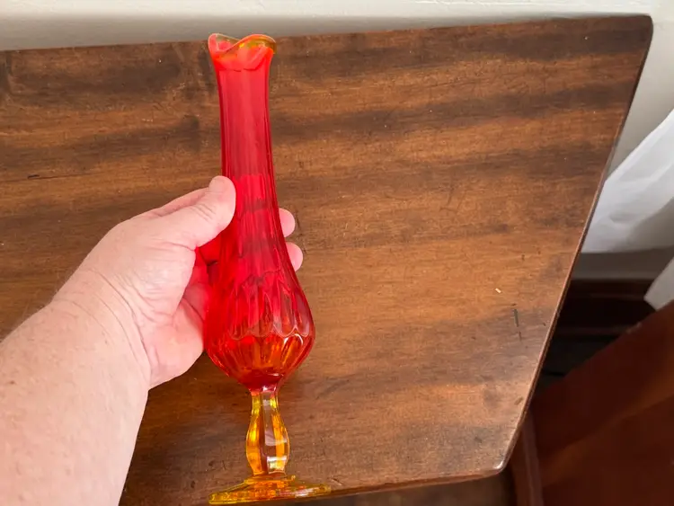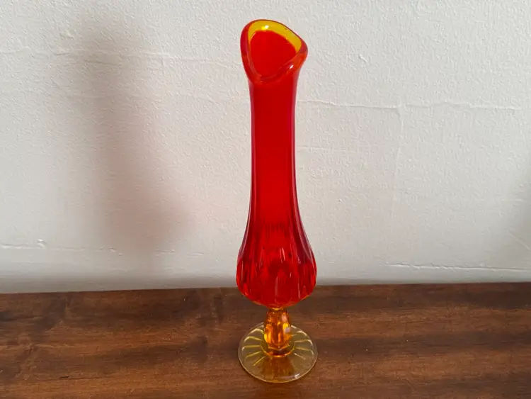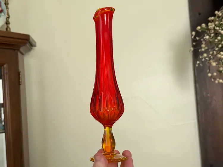 Vintage Fenton swung glass vase thumbprint in amberina