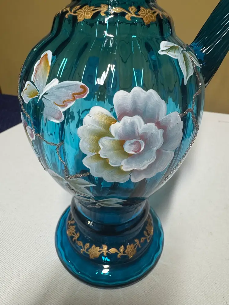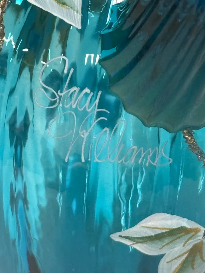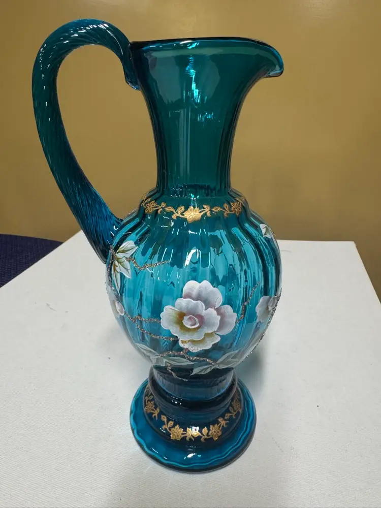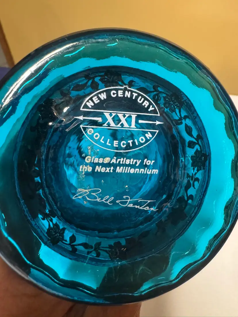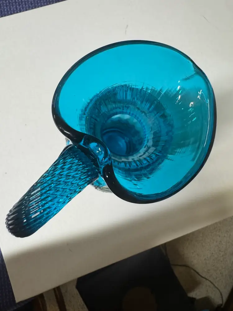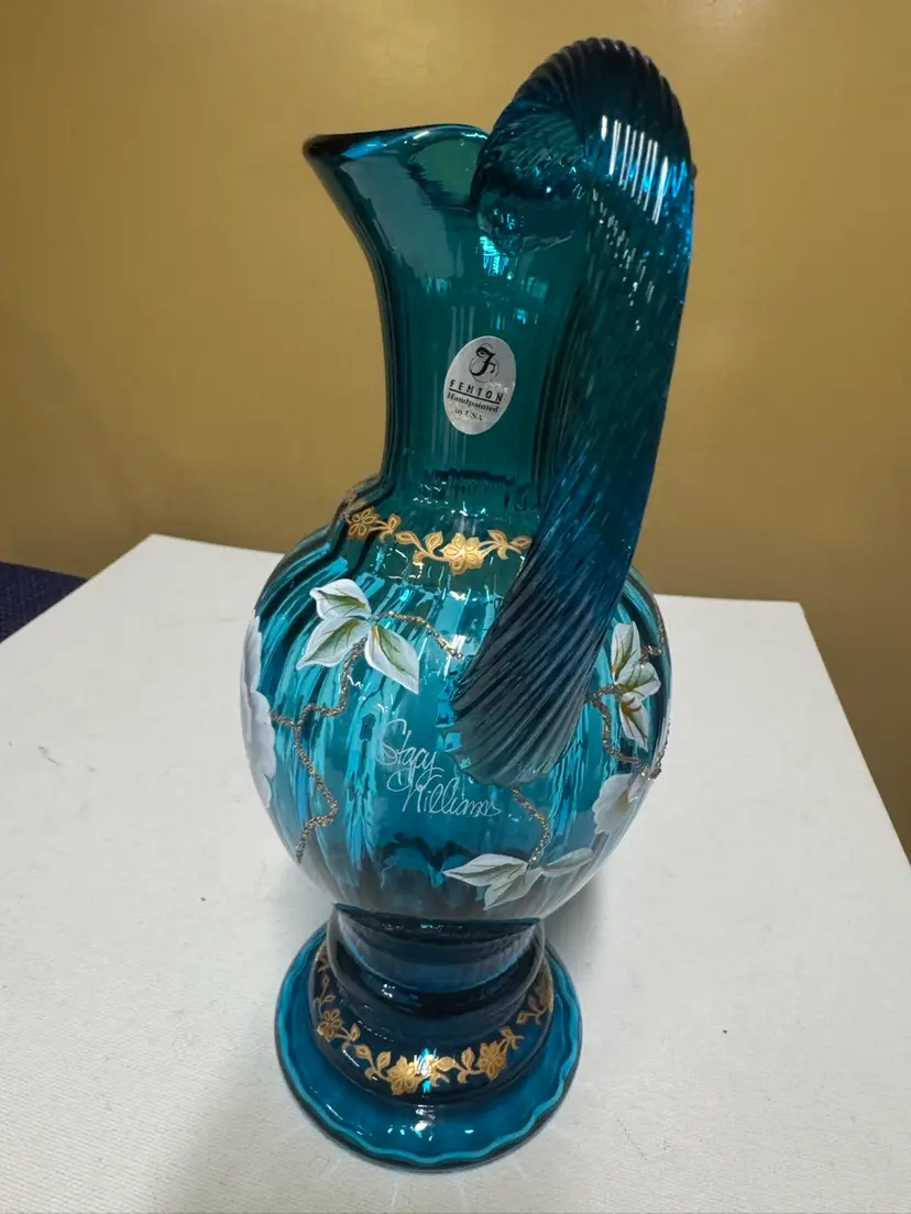 Fenton Turqouise Blue Pitcher New Century XXI Collection Signed Stacy Williams on side and Bill Fenton on bottom Measures approx 9.25” H Gorgeous with no breaks or chips (868842525w2121)
