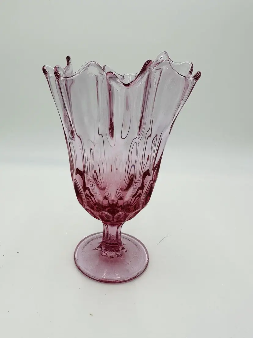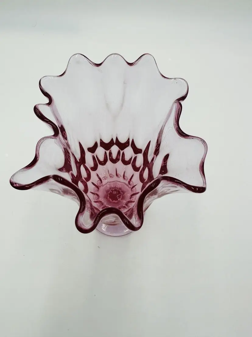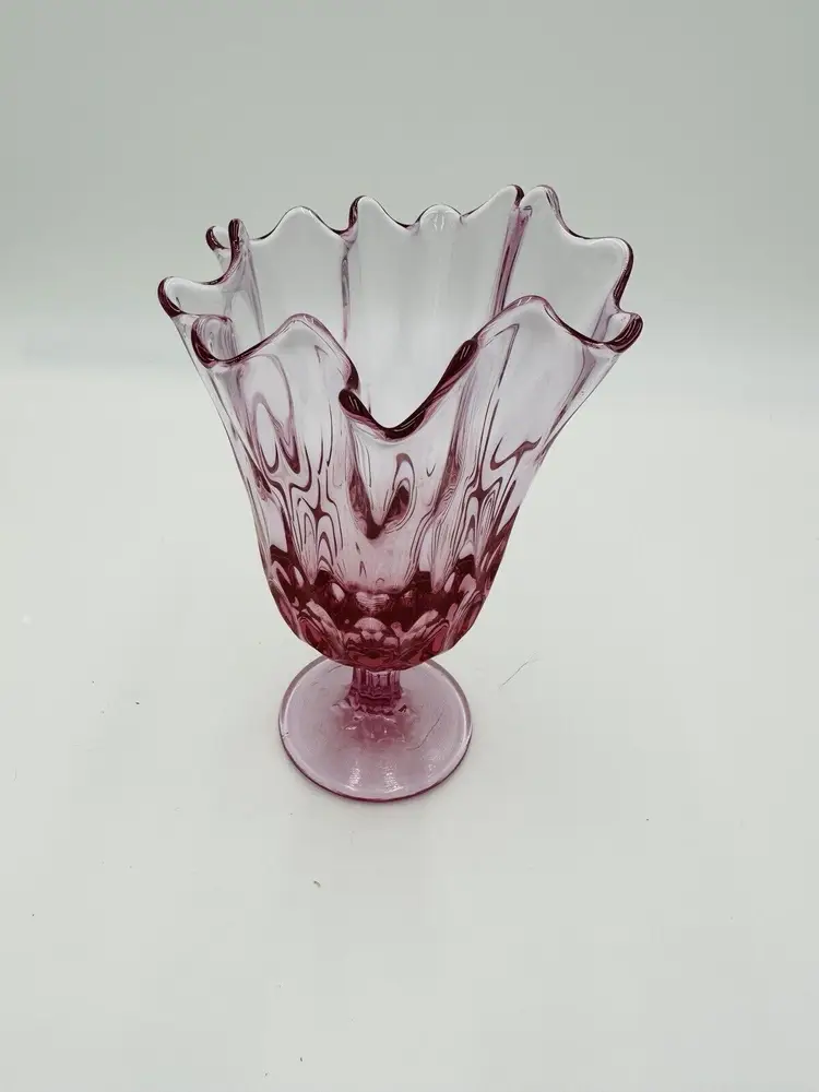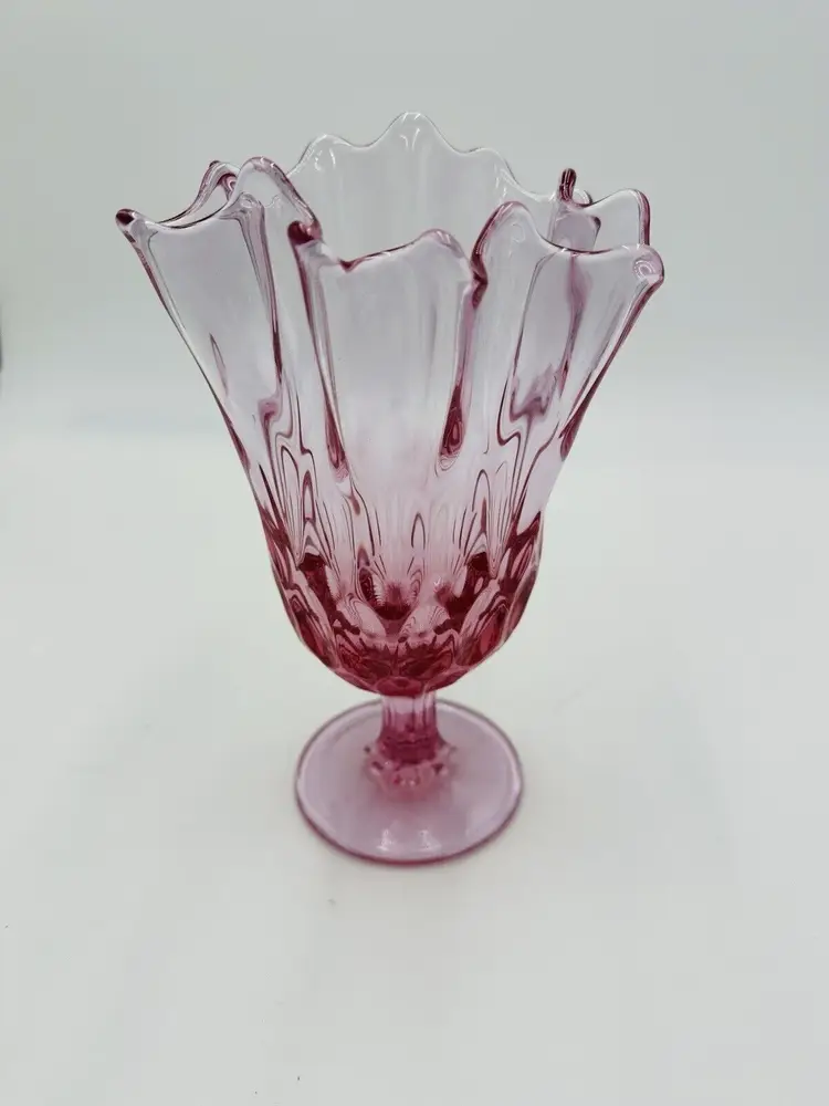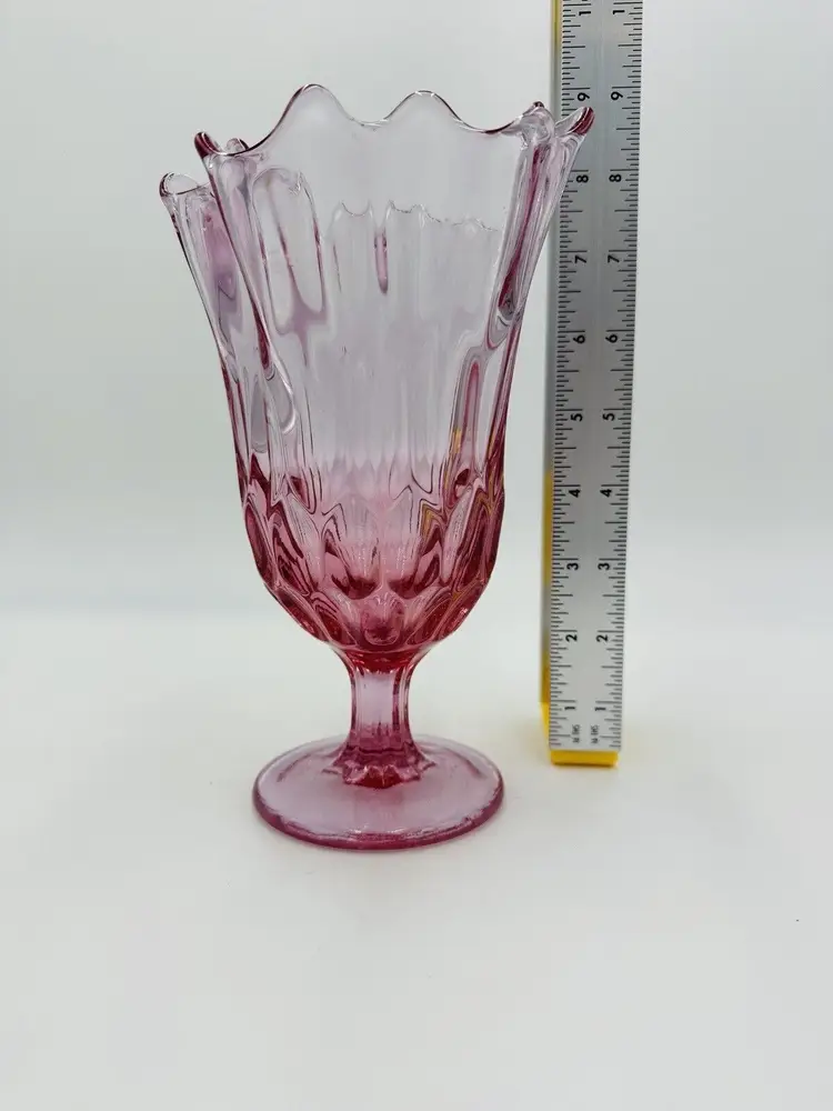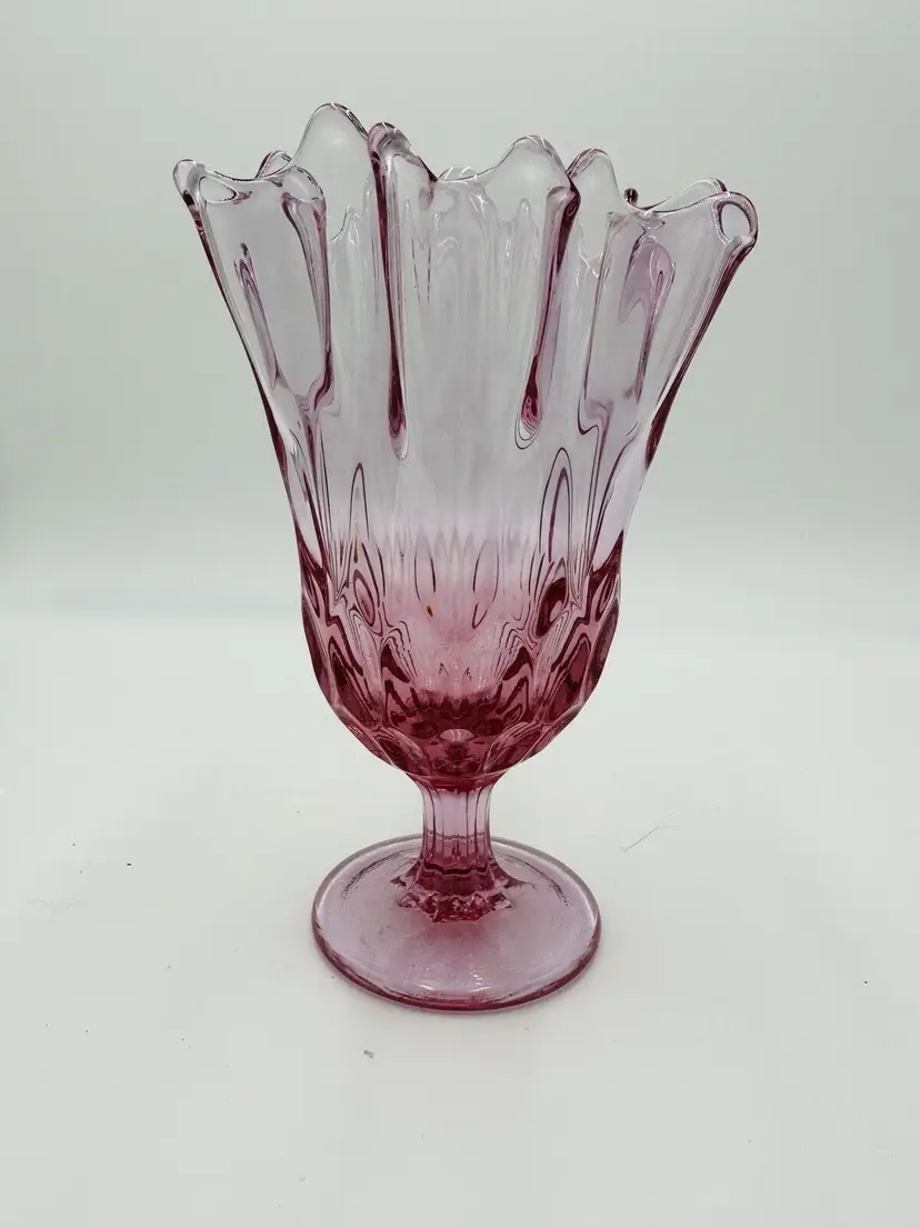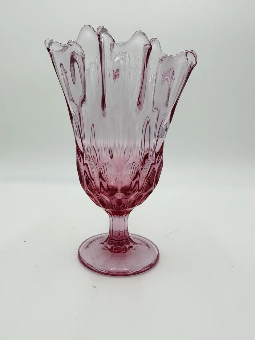 MPN: na Pattern: Thumbprint Production Technique: Fused Glass Item Length: 8 in Item Height: 8 in Subject: North America Vintage: Yes Country/Region of Manufacture: United States Origin: North America Material: Glass Type of Glass: Pink Model: Handkerchief Vase Product Line: Colony Production Style: Art Glass Subject/Theme: Vase Brand: Fenton Color: Colonial Pink Original/Licensed Reproduction: Original Backstamp: Impressed Type: Vase Original/Reproduction: Vintage Original
