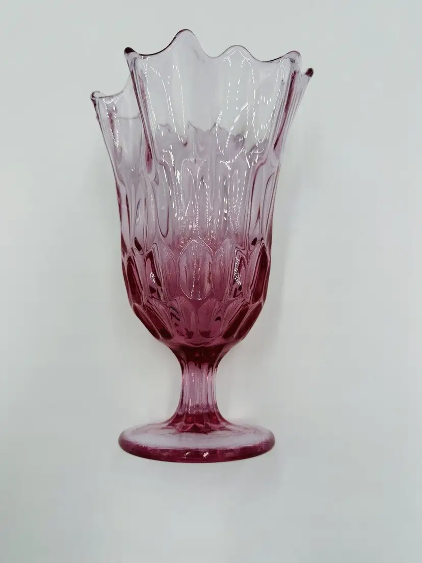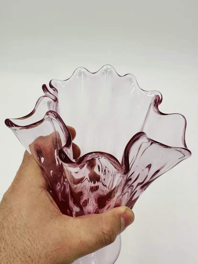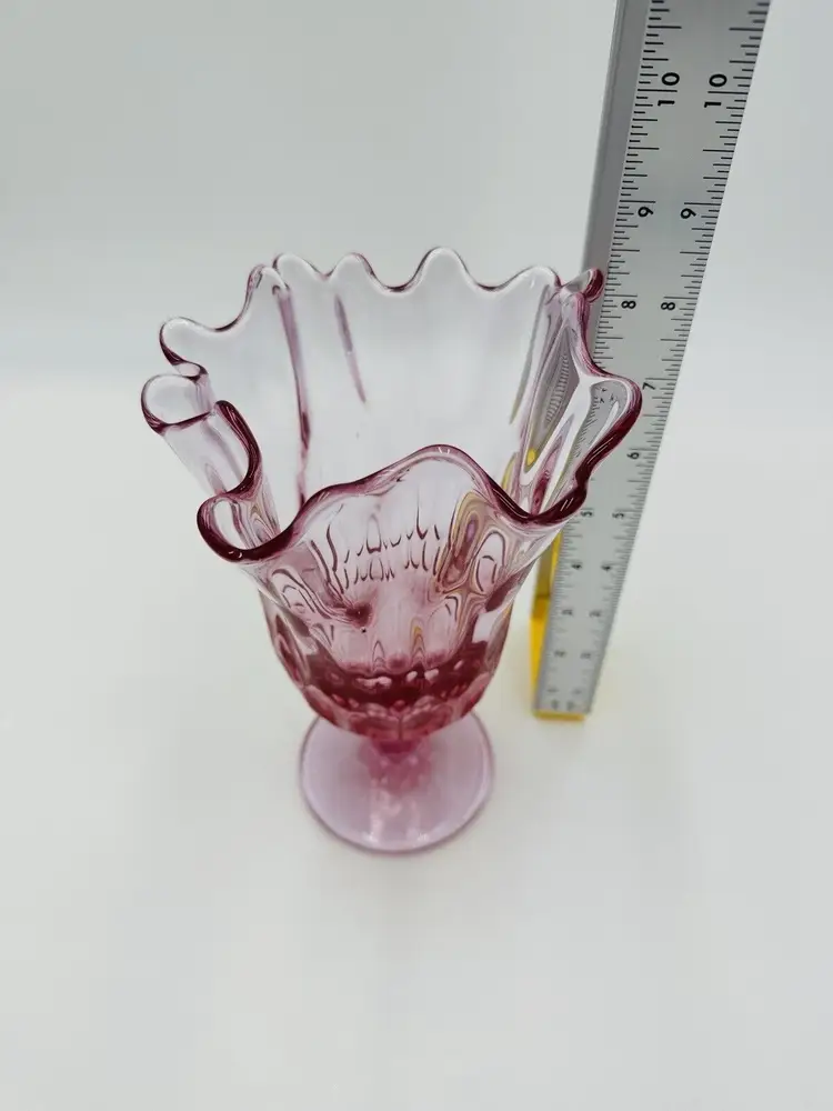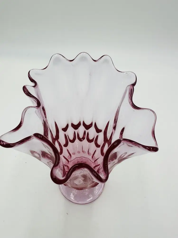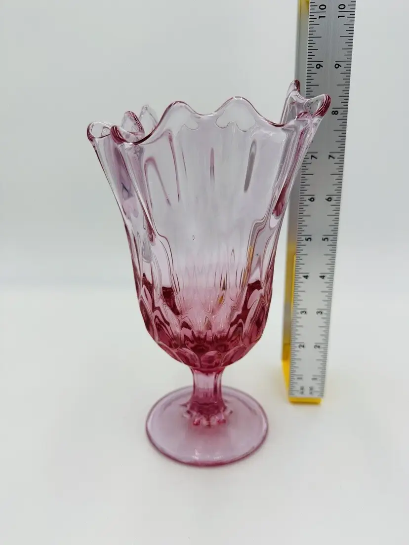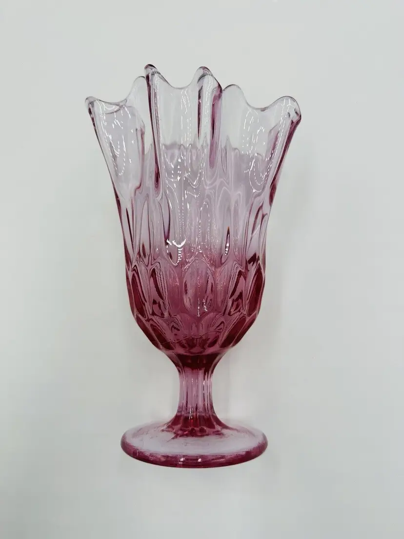 MPN: na Pattern: Thumbprint Production Technique: Fused Glass Item Length: 8 in Item Height: 8 in Subject: North America Vintage: Yes Country/Region of Manufacture: United States Origin: North America Material: Glass Type of Glass: Pink Model: Handkerchief Vase Product Line: Colony Production Style: Art Glass Subject/Theme: Vase Brand: Fenton Color: Colonial Pink Original/Licensed Reproduction: Original Backstamp: Impressed Type: Vase Original/Reproduction: Vintage Original