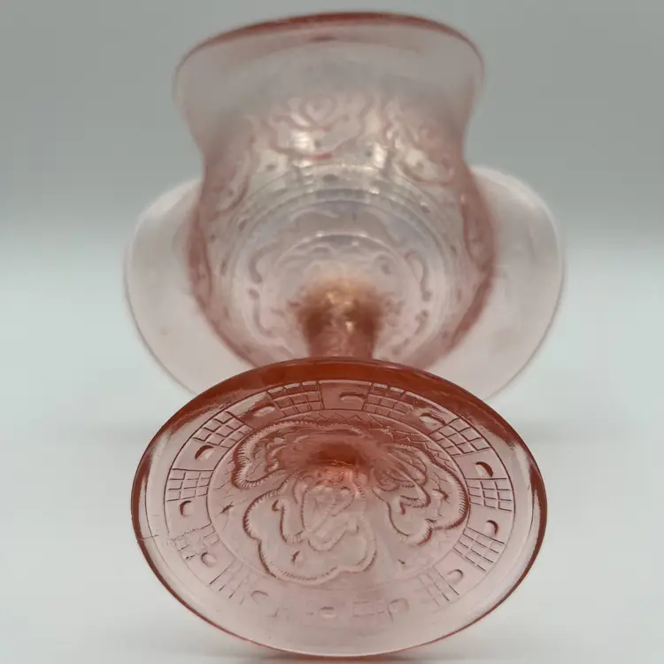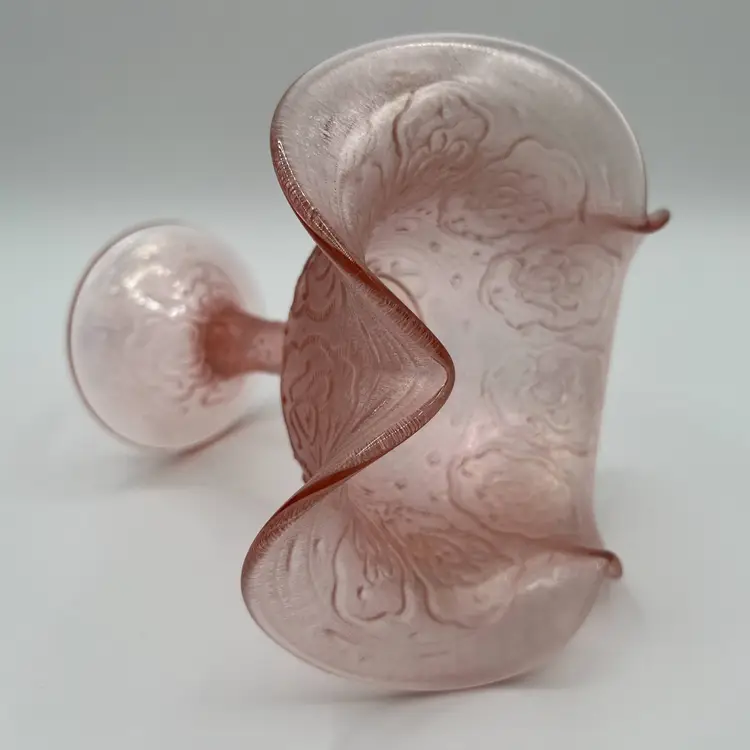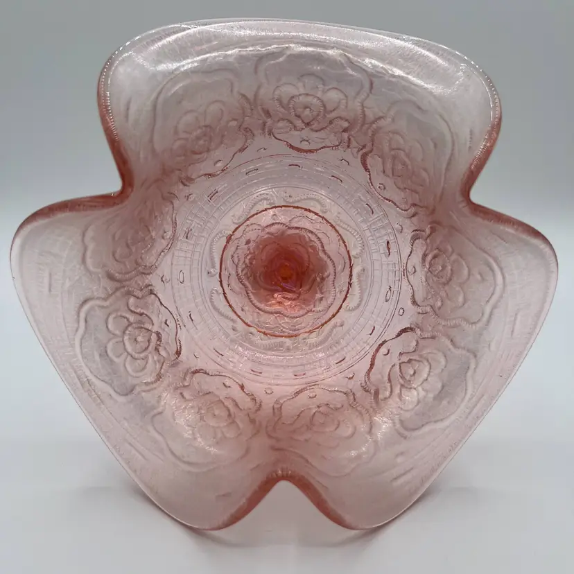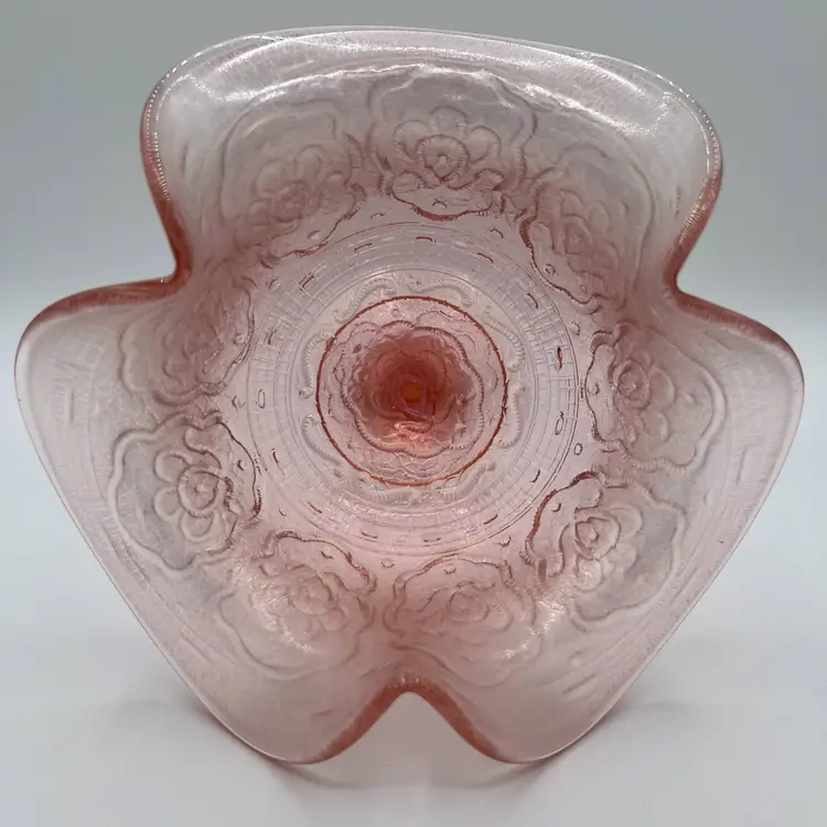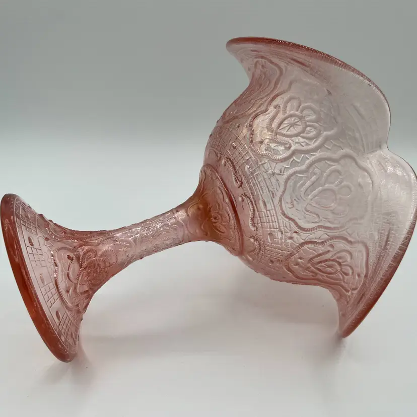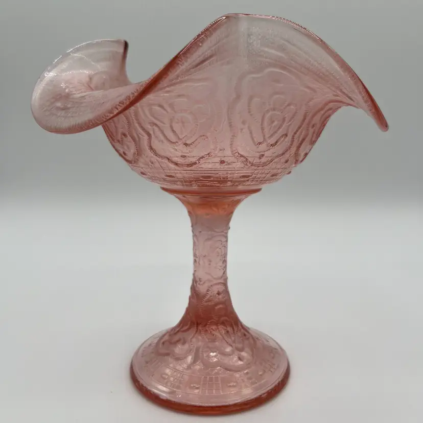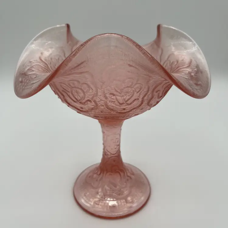 Fenton 75th Anniversary Compote Color: Rose/Pink Pattern: Persian Medallion Pink Carnival (Stretch) Vela Rose (Stretch) Stamped Fenton 75th on the bottom (see photo) No visible scratches, defects, chips or cracks Production Period: 1980-1982