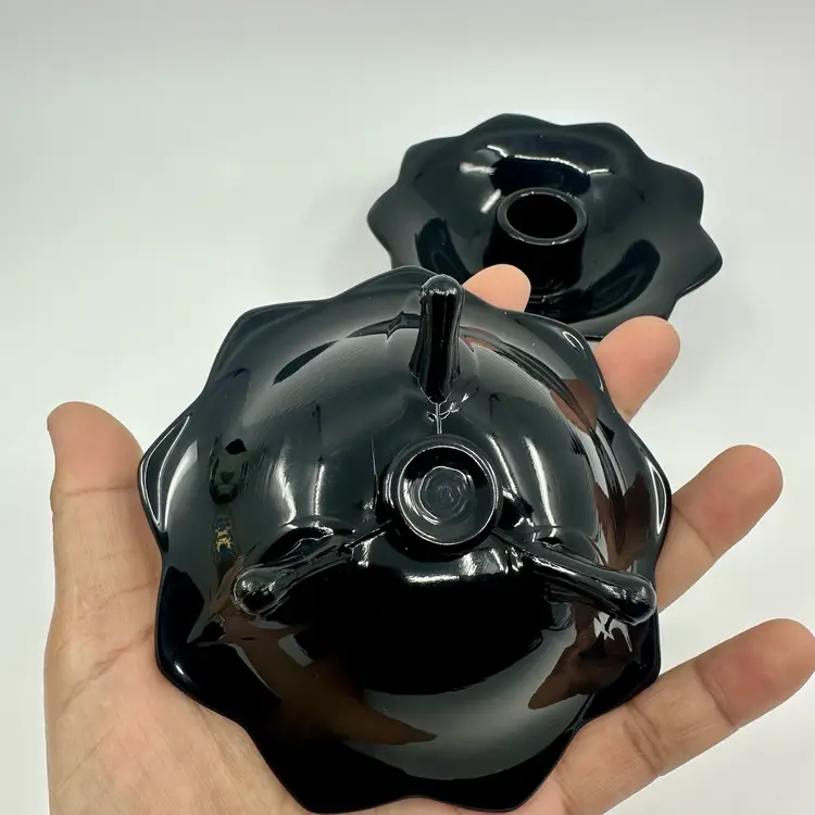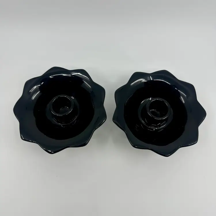 Approx 4.5” across, good condition, no chips or cracks. Lucite candles not included.