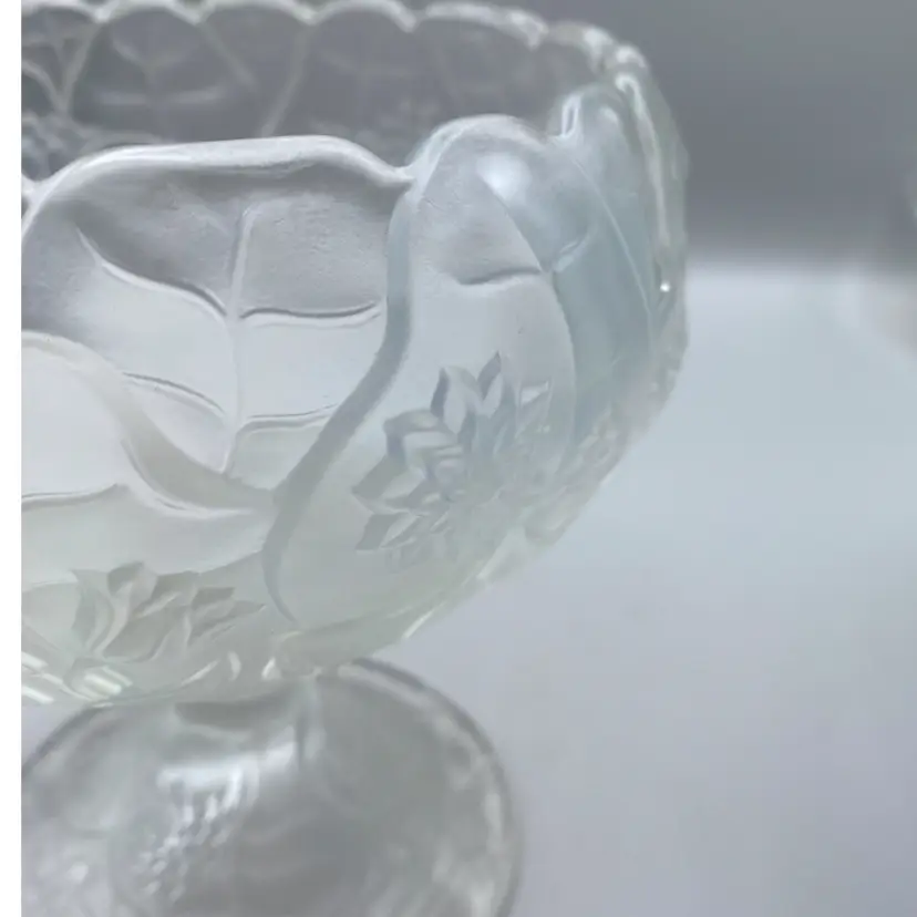 Vintage Fenton Frosted Satin Glass Water Lilly Pedestal Compote READ