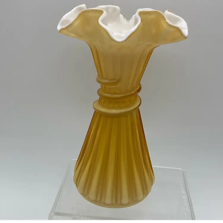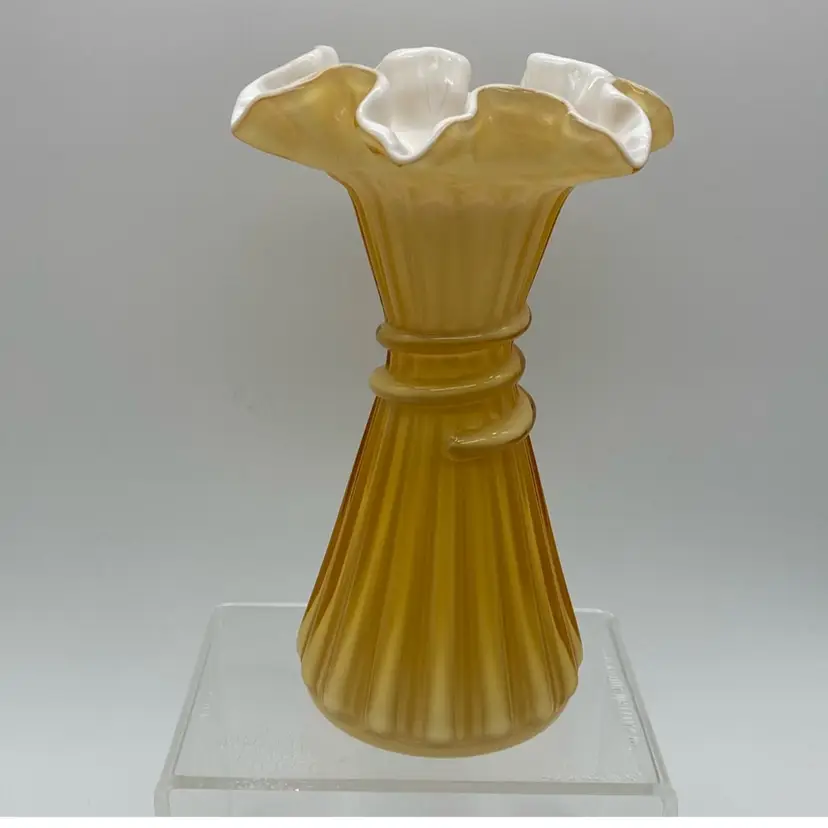 Beautiful honey amber glass over white. Wheat design. Unmarked Fenton. No chips or cracks.