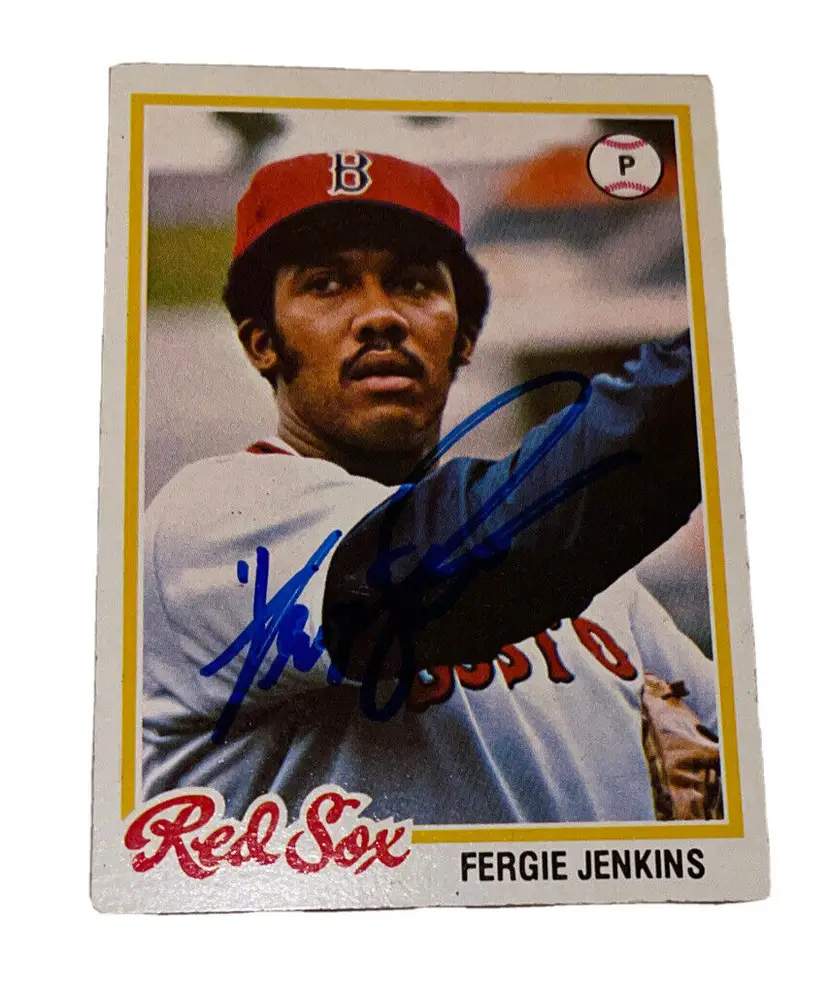 Card Size: Standard Autographed: No Set: 1978 Topps Autograph Format: Does not apply Signed By: Fergie Jenkins Player/Athlete: Fergie Jenkins Year Manufactured: 1978 Vintage: No Event/Tournament: Major League Lacrosse Championship Card Thickness: 20 Pt. Sport: Baseball Parallel/Variety: Red Autographs Language: English Card Name: Fergie Jenkins Manufacturer: Topps Team: Red Sox Features: Does not apply Season: 1978 League: Major League (MLB) Print Run: Fergie Jenkins 1978 Material: Card Stock Insert Set: Fergie Jenkins 1978 Original/Licensed Reprint: Licensed Reprint California Prop 65 Warning: Does not apply Type: Sports Trading Card Card Number: 720 Country/Region of Manufacture: Unknown