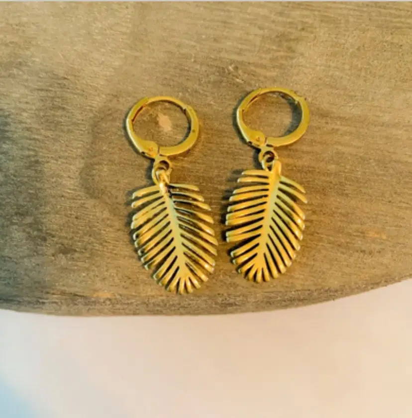 ⬩12mm Brass Fern ⬩Huggie Hoop style Brass Earwire ⬩1.25 inch Dangle earring ⬩Ferns symbolize sincerity, hope, family and beginnings.