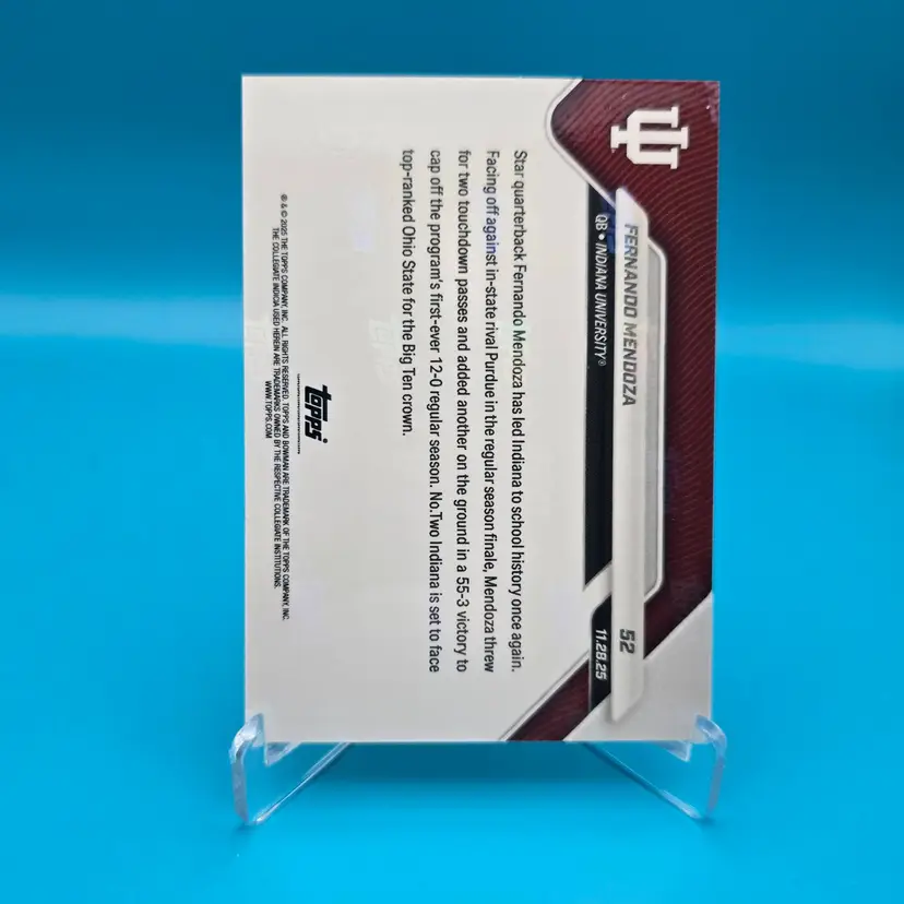 Fernando Mendoza, Heisman winner. Bowman U Now hold foil card commemorating undefeated season numbered /50. NM or better condition. Shipped BMWT.