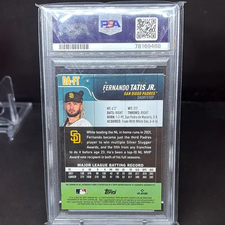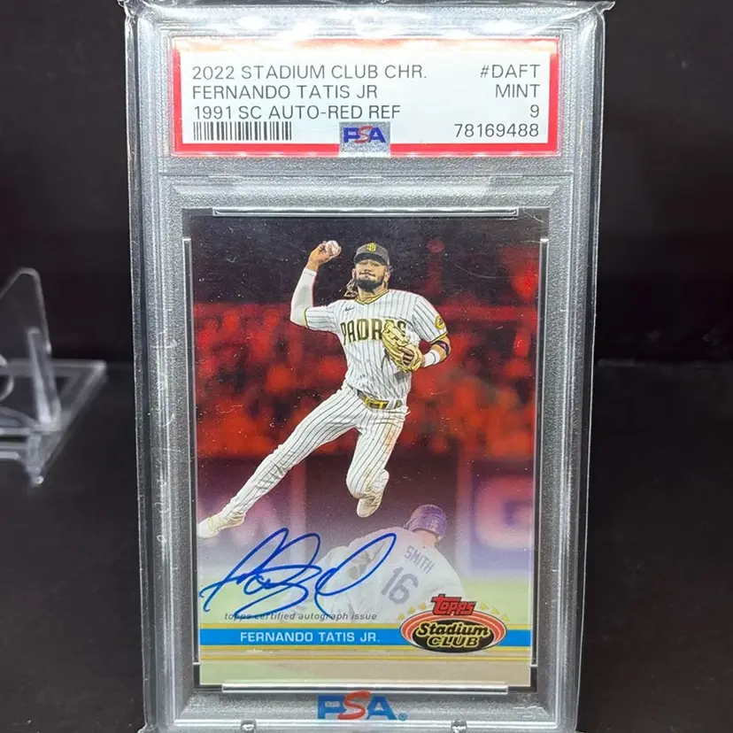 Fernando Tatis Jr. 2022 Stadium Club Chrome On-Card Auto Red Refractor /5 PSA 9 Free Priority Shipping